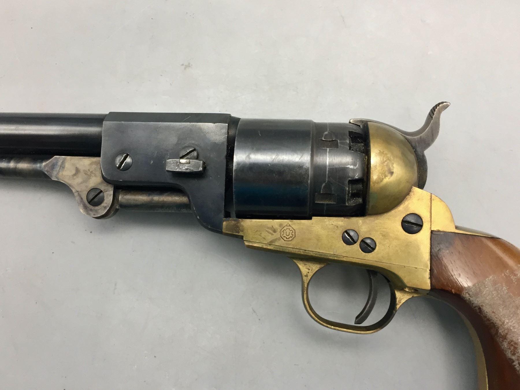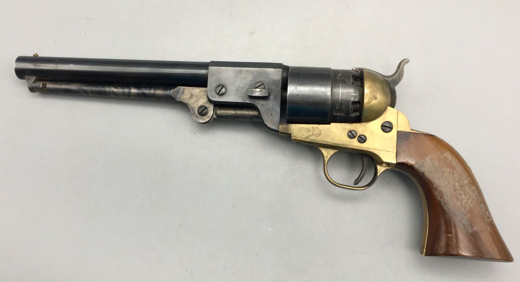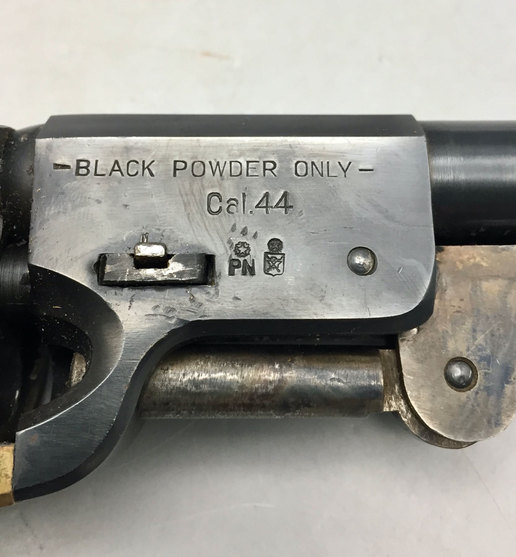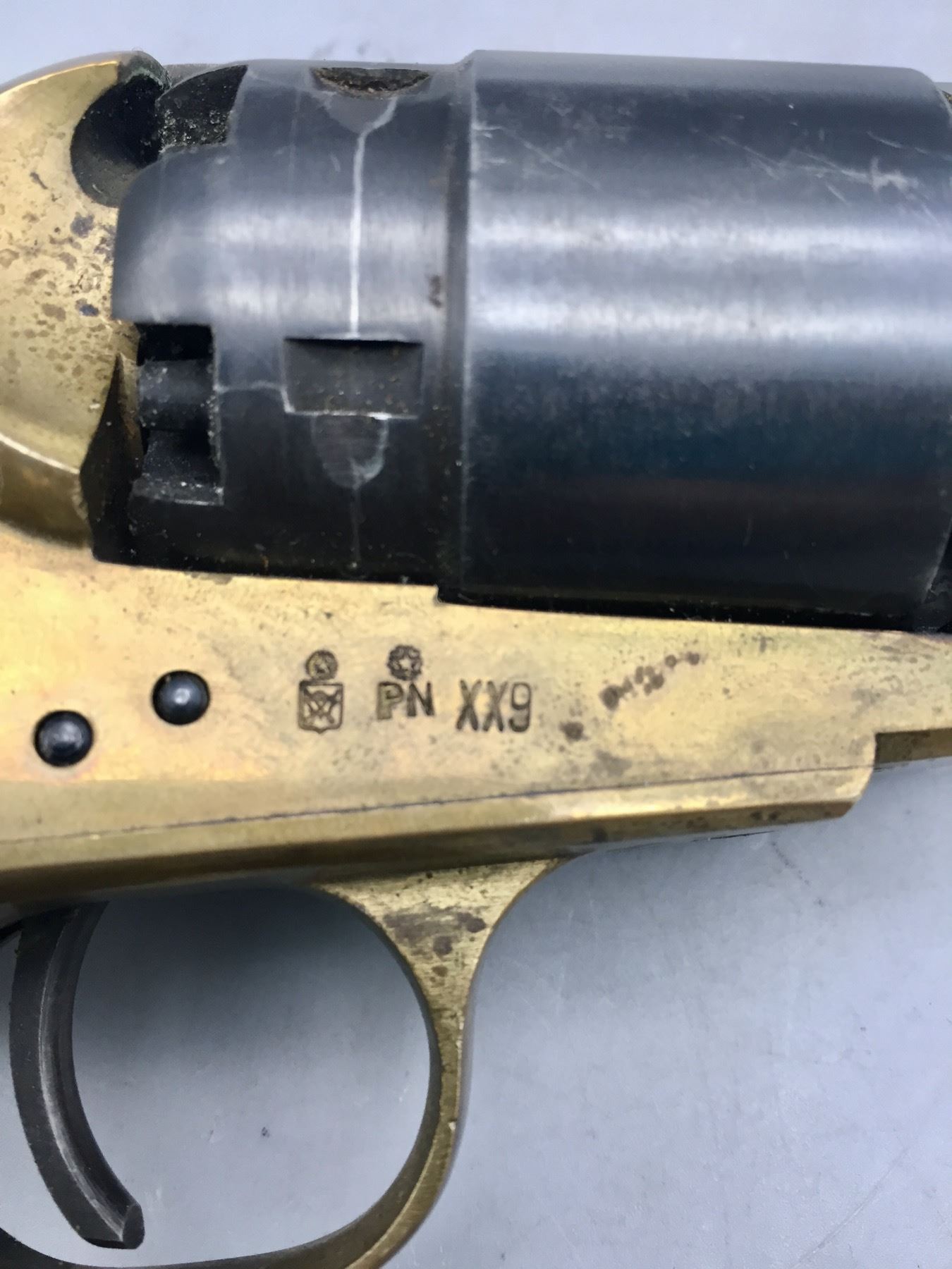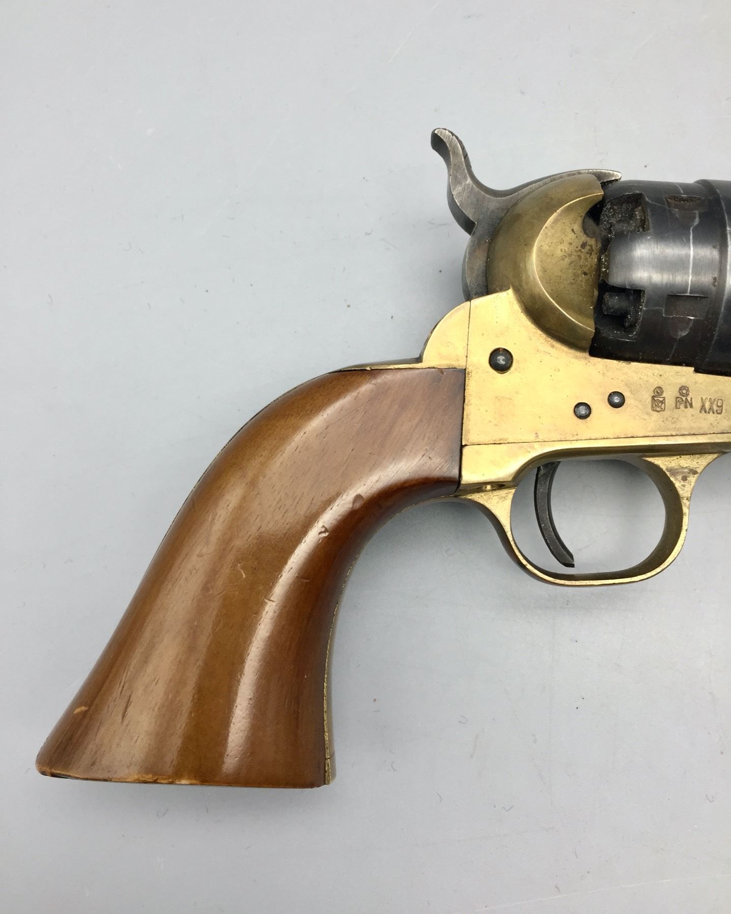 Description: Offered for sale in this lot is a Navy Arms, 1860 Army Replica, .44 caliber black powder, percussion cap revolver. Maker: Navy Arms Co. Approx. Age: Moern. Serial No. 41539. Size: Barrel measures 7.5†with an overall length of 14â€. Condition: Good for its age, minimal wear expected. One grip has marks from an old tag or from tape. Please look closely at the pictures - they are an important part of our description. Shipping: There will be a $15 handling / packaging fee for shipping this lot. The actual cost of postage will be added on top of that. *BLACK POWDER Replica firearm DOES NOT REQUIRE an FFL Transfer*