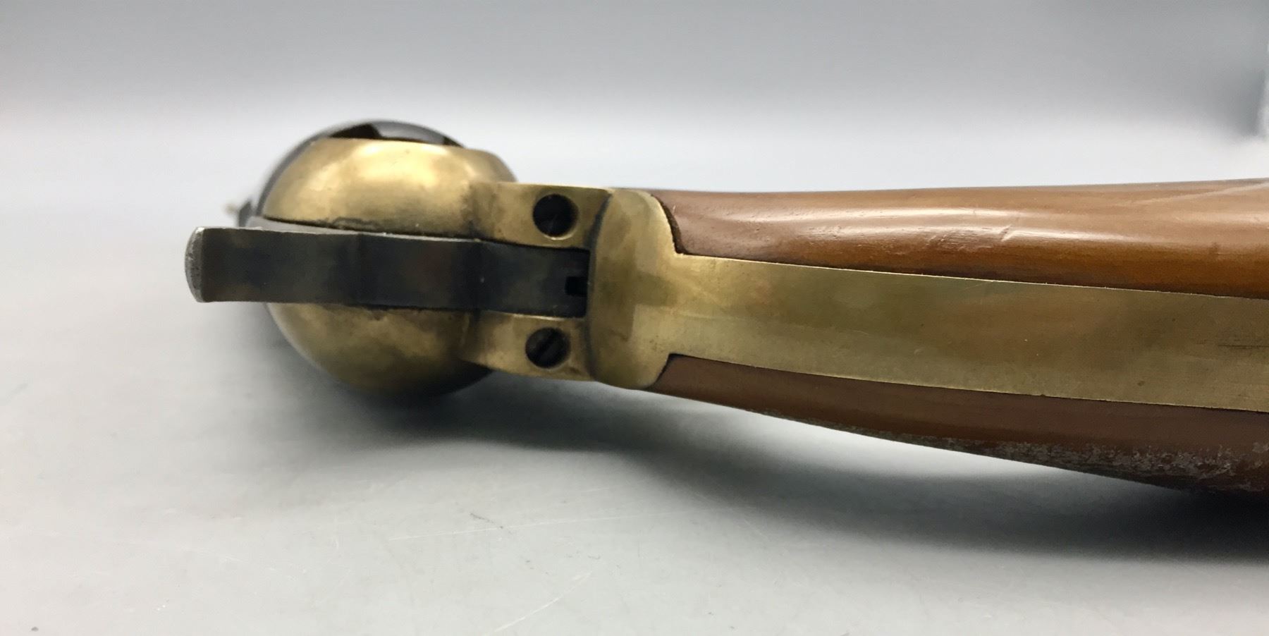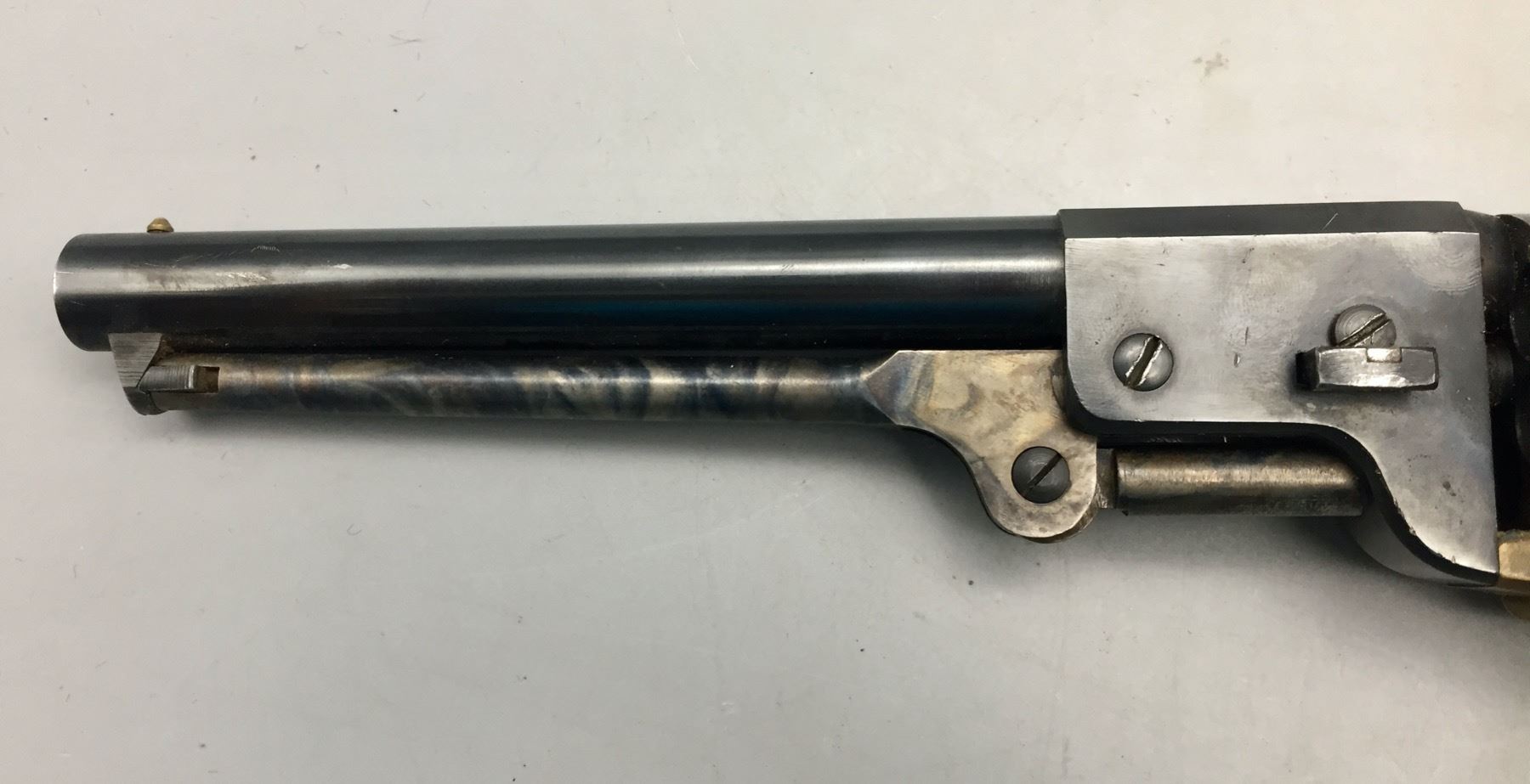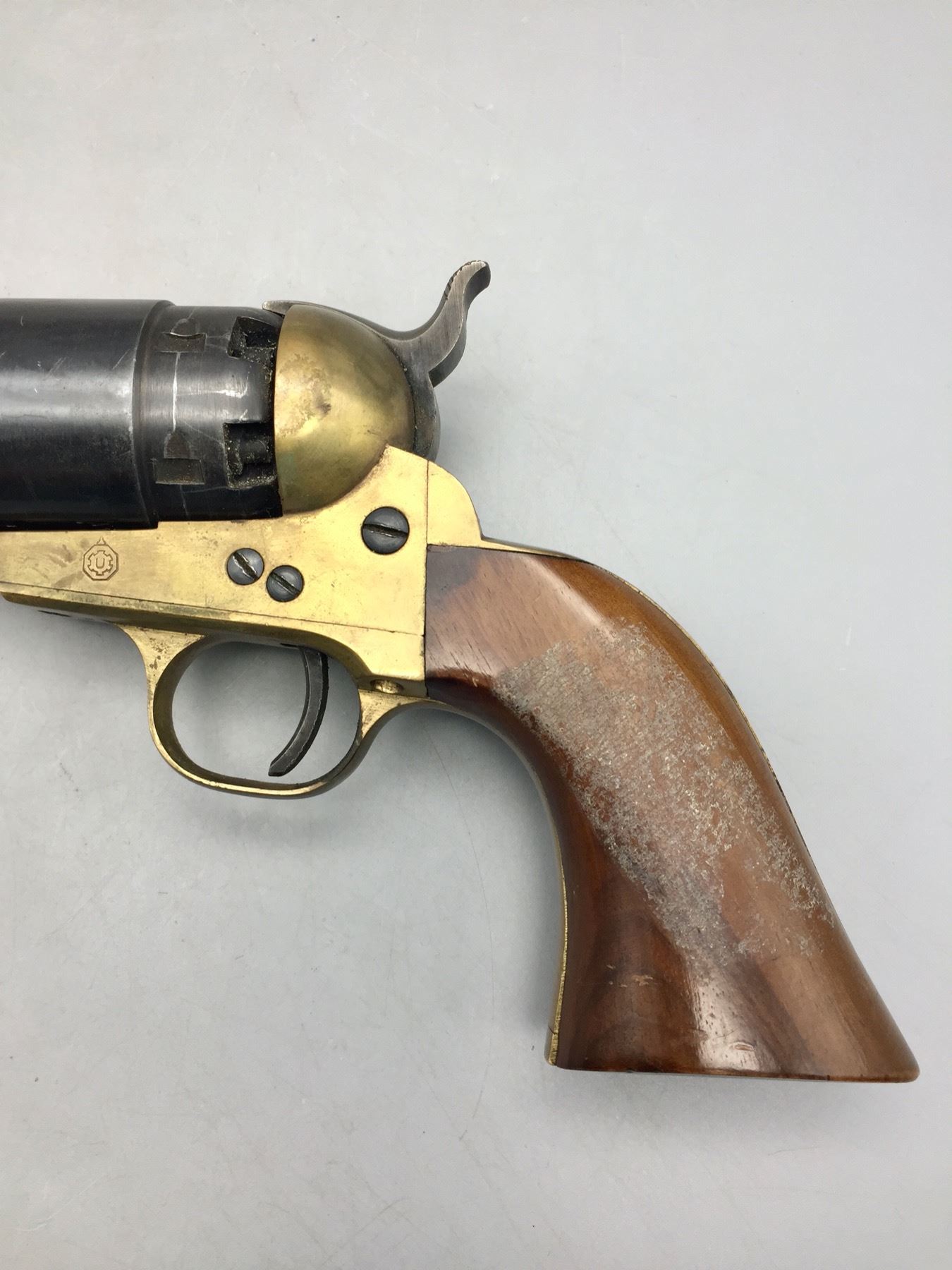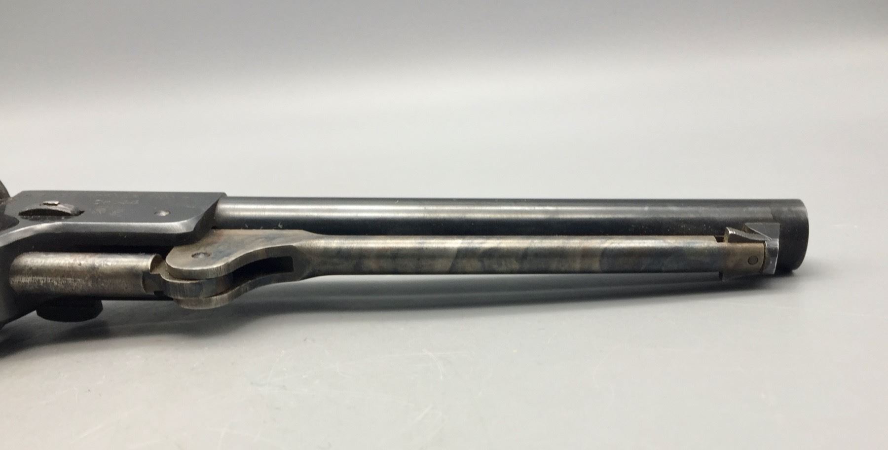 Description: Offered for sale in this lot is a Navy Arms, 1860 Army Replica, .44 caliber black powder, percussion cap revolver. Maker: Navy Arms Co. Approx. Age: Moern. Serial No. 41539. Size: Barrel measures 7.5†with an overall length of 14â€. Condition: Good for its age, minimal wear expected. One grip has marks from an old tag or from tape. Please look closely at the pictures - they are an important part of our description. Shipping: There will be a $15 handling / packaging fee for shipping this lot. The actual cost of postage will be added on top of that. *BLACK POWDER Replica firearm DOES NOT REQUIRE an FFL Transfer*