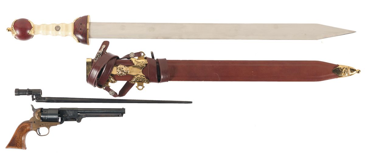 Navy Arms Co. Percussion Revolver with Roman Cavalry Style Sword and Mosin Nagant 91/30 Bayonet