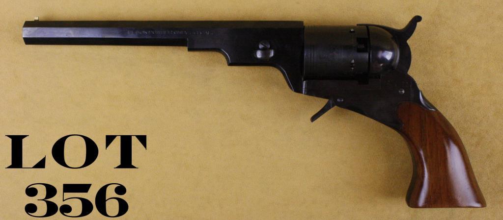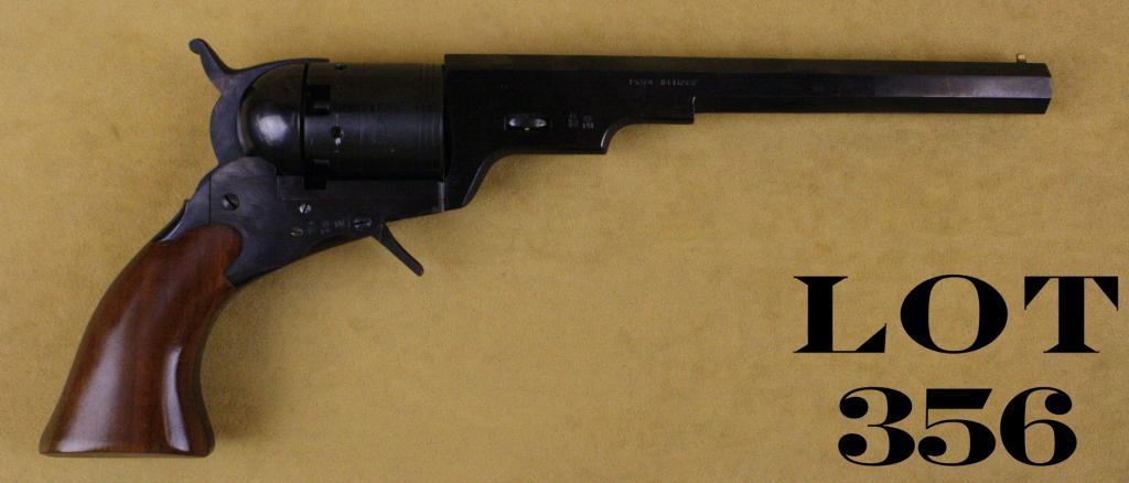 Navy Arms Italian-made copy of a Colt Texas Paterson percussion revolver, .36 cal., 7-1/2” octagon barrel, blue finish, wood grips, #1132. This gun is in overall excellent condition showing little handlingor use; accompanied by a factory cardboard box and Styrofoam insert. Est.: $250-$500.