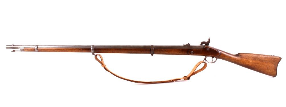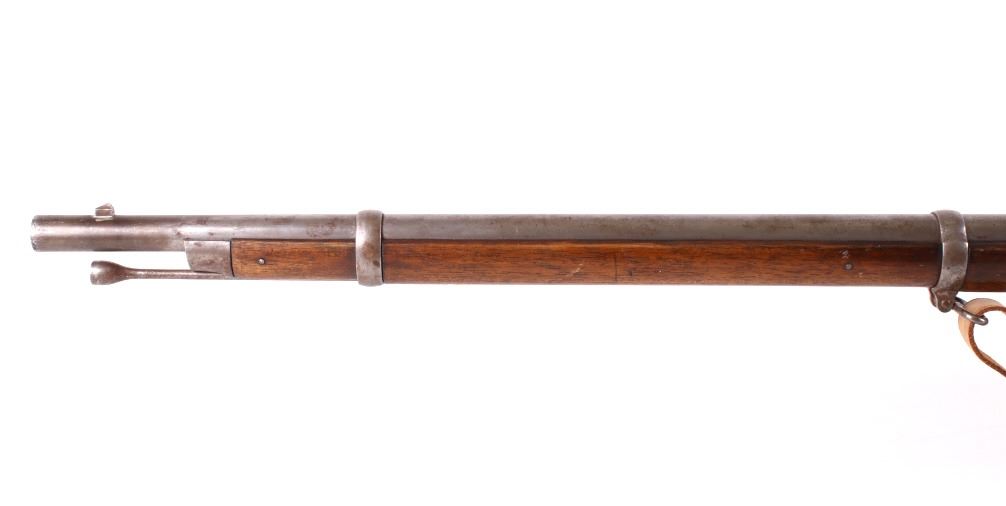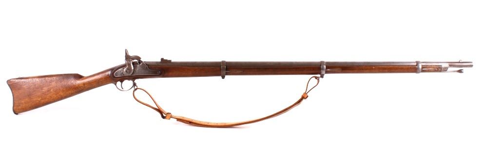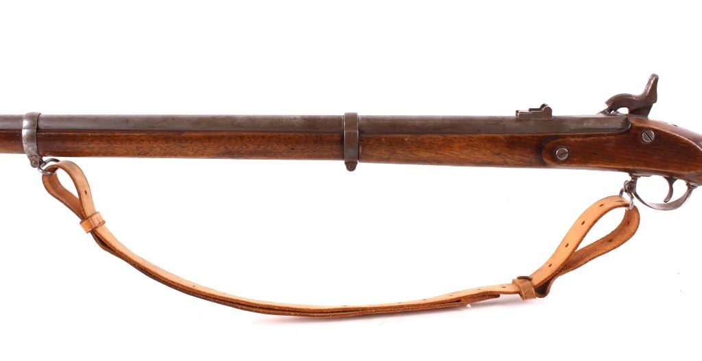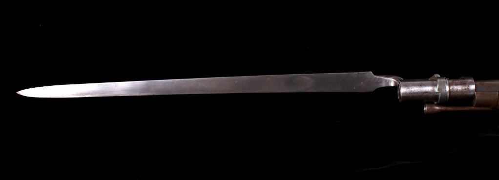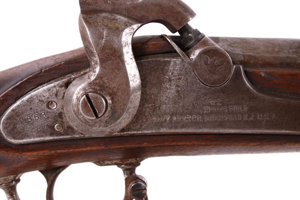 Included in this lot is a Navy Arms U.S. Springfield Model 1863 black powder musket. This reproduction rifle was manufactured during the 1970's. This Model 1863 has variation II features like the band springs and rear sight. This musket utilizes a 40" round barrel marked on the left "Japan 3549" and on the top "Navy Arms Co. Ridgefield N.J. U.S.A." The rifle is made by Miroku in Japan. The stock is made of straight grain European walnut and shows fair condition. The locking plate also is marked "U.S. Springfield - Navy Arms Co. Ridgefield N.J. U.S.A. - 1863." The rifle shows a a nice gray patina on the barrel and locking plate. Rifle comes with the original bayonet. Serial Number: 3549. This is a black powder rifle and does not require FFL Transfer or NICS Background Check.