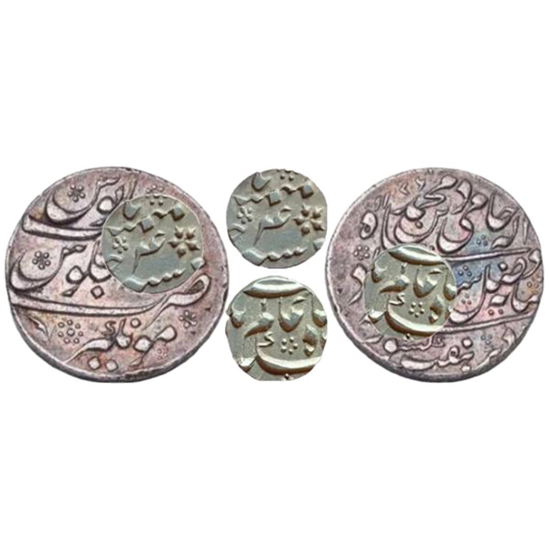 Nawab of Bengal, IItimad Ud-Daula Mir Qasim issue, Silver â…› Rupee (2 Anna), 1.41g, Munger Mint, RY 4, Uncirculated, Unique (only pc known), The Specimen offered here is listed in Zeno by Lingen, Paul Stevens has recognised and listed the coin under munger, CAT No. BE 160E.& nbsp;Historically important coin.The Nawab of Bengal, Itimad Ud-Daula Mir Qasim (1760-1763) shifted his capital from Murshidabad to Munger in June,1762 (1175 AH). After a year& #39;s reign he was removed as the Nawab by the East India Company in July 1763(1176 AH). During this period , Mir Qasim glorified the Munger city and established a mint there and issued coins. Interestingly this fraction is minted from a Nazrana die which is entirely different from conventional Munger rupees bearing the Sun symbol, Instead this has a five dot rosette symbol on the obverse side. As we get conventional Sun Siccas in the Hizri year 1177 AH from Munger mint, so it must be issued by the company. This new design was introduced by the Nawab probably to differentiate from normal sun siccas of other Bengal mints which were mainly controlled by the company to depreciate their values in & lsquo;Battas& rsquo;, which was one of the main reason behind the war between Nawab and company. Either this Nazrana die was not circulated due to the pressure of the company or withdrawn after the fall of Mir Qasim.