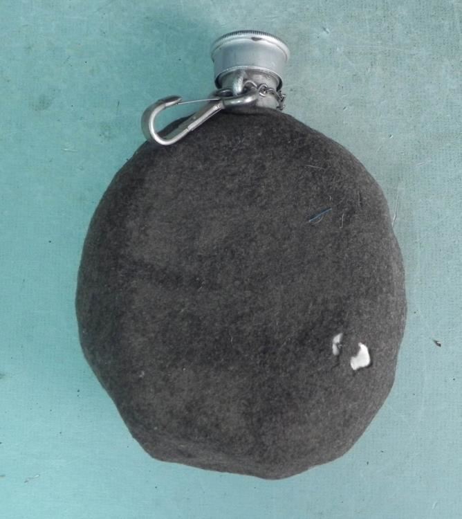 Nazi Canteen, Green Covering w/ Silver Belt Clip Very nice antique piece. Wool covering is buttoned on.