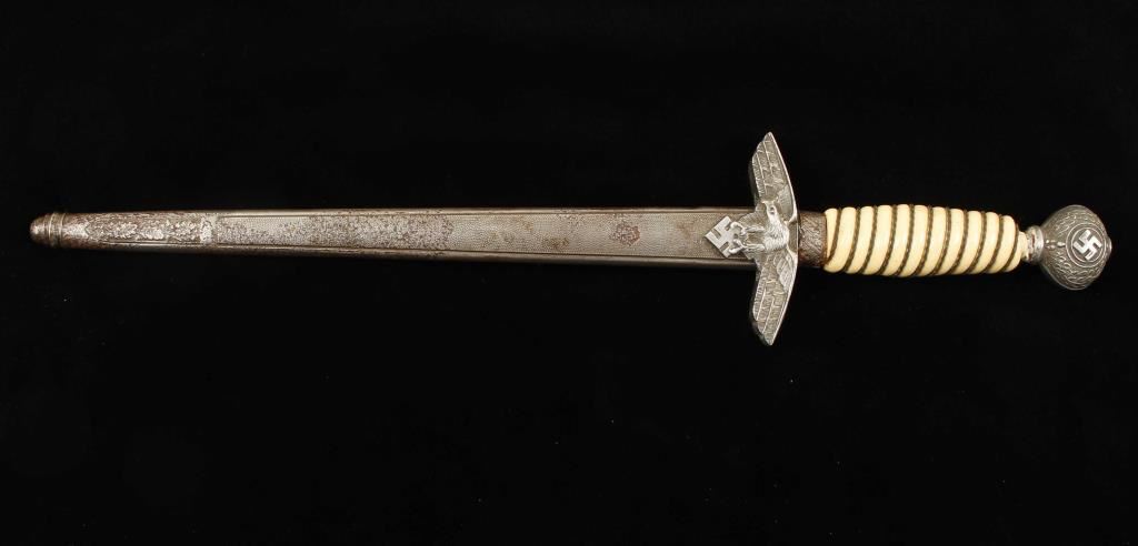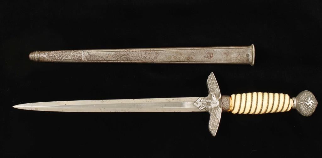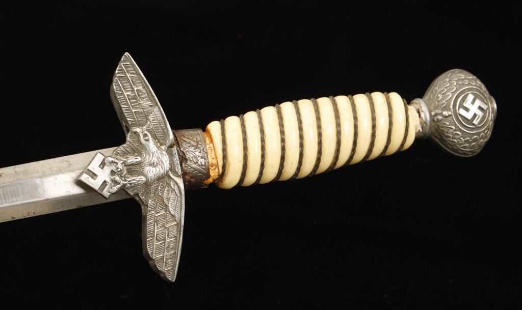 Luftwaffe, bakelite wire wrapped handle which shows some losses at tip. Blade is marked "P.D. Luneschioss Solingen".