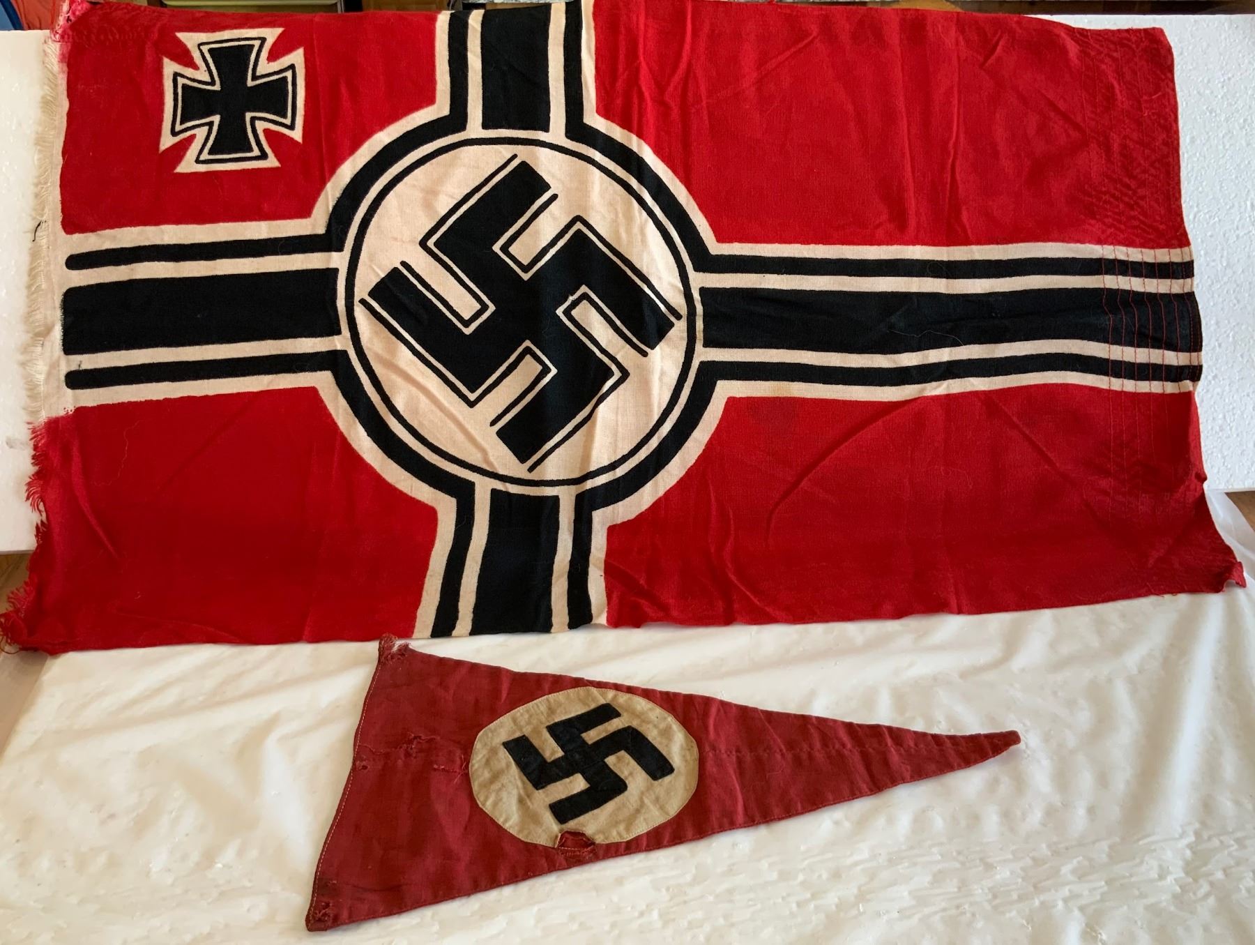 Nazi Flag and Pennant Brought Home by POW form Zealandia SK