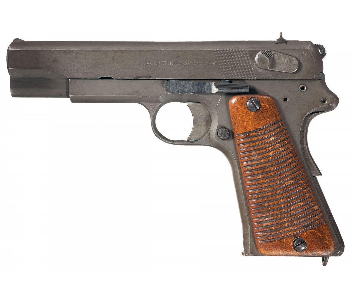 Condition: Very fine with 90% plus thin original phosphate finish remaining with scattered scratches and marks with minor edge wear. Grips are very fine as revarnished with some handling marks and scratches. Mechanically excellent.