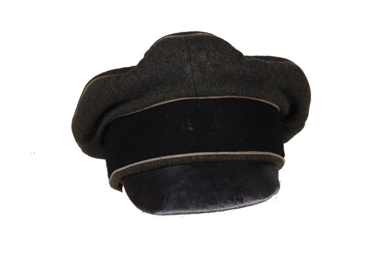 Nazi "SS" Crushser Cap Green wool with black band. In overall good condition. No significant markings inside or outside. You can faintly tell where the emblems should have been on the front of the cap.Green wool with black band. In overall good condition. No significant markings inside or outside. You can faintly tell where the emblems should have been on the front of the cap.