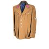 Established in July of 1941, the Reichsministerium fuer die besetzen Ostgebite, also known as the RMBO or Ostministerium, was the bureaucratic organ established to manage the Russian land seized by Operation Barbarossa. An early stage of Hitler's dreams of "lebensraum", the RMBO men served as superiors to local elders and village chiefs who had to answer to the Nazis while running the day to day operations of their areas. While the eventual goal was to drive all the Russians to death or serfdom and replace them with Germans, the collapse of the Eastern Front and the unstoppable Soviet counter-strike briskly and firmly slammed the door on those dreams. Brown wool construction overall, with a pair of collar tabs bearing laurel leaf borders and three rank diamonds each, a silver thread on brown felt Nazi eagle on the left arm, tan braided cord around the cuffs and the "state official" buttons on the front and pockets. No makers marks are visible on the light purple inner lining.