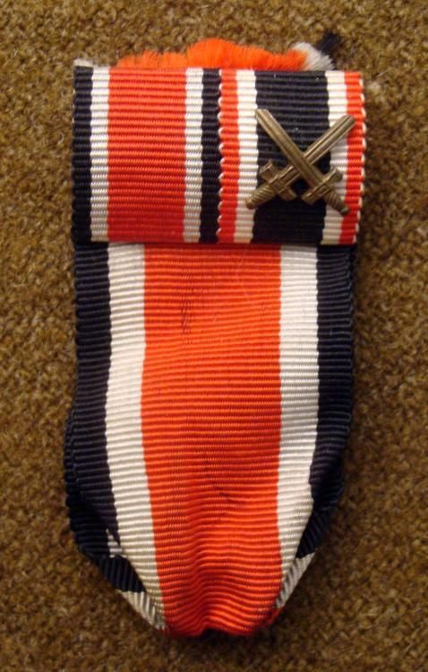 Nazi WWII Original Iron Cross Ribbon w/ Swords from a service badge. Rare.