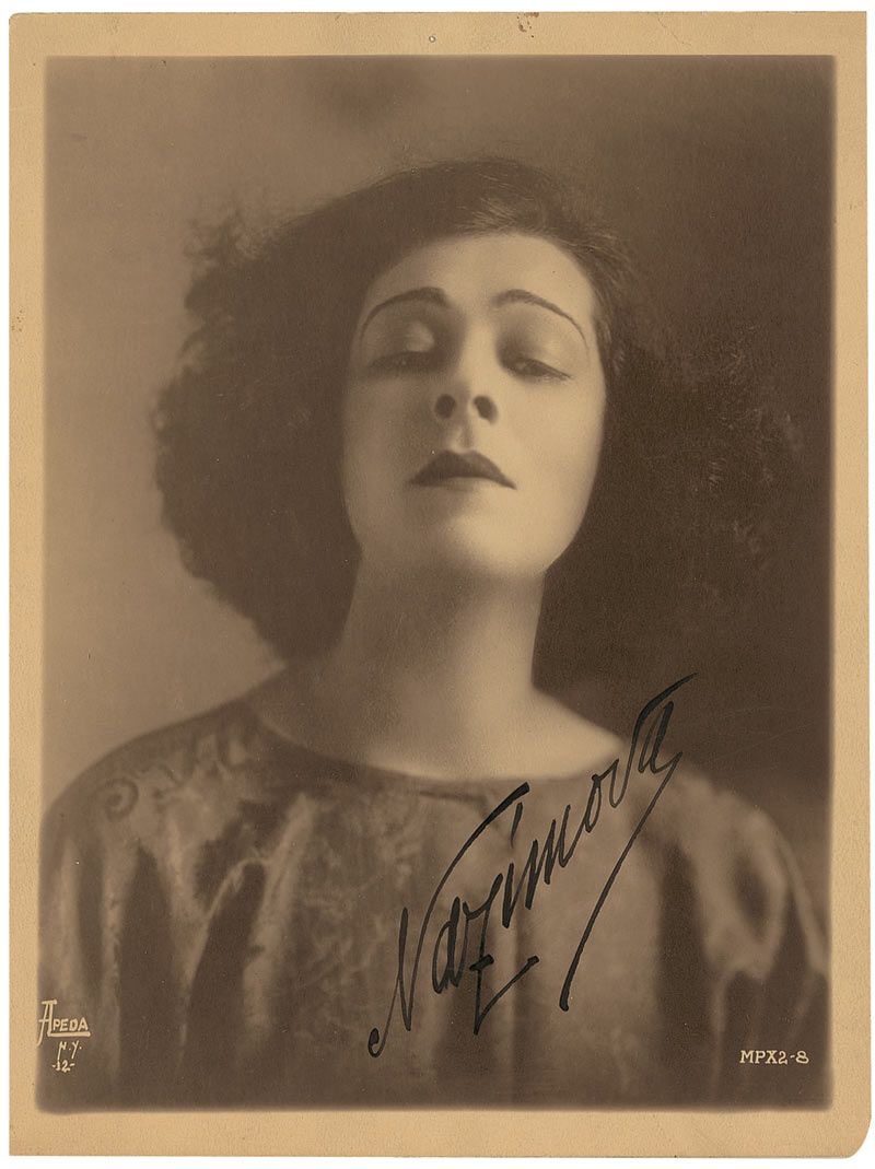 Vintage matte-finish 6.25 x 8.25 head-and-shoulders photo, boldly signed in fountain pen. In fine condition, with a small tack hole, crease, and spot to top border, and a tiny chip to lower right corner tip.