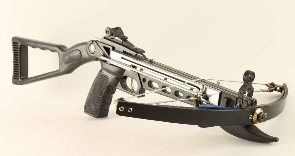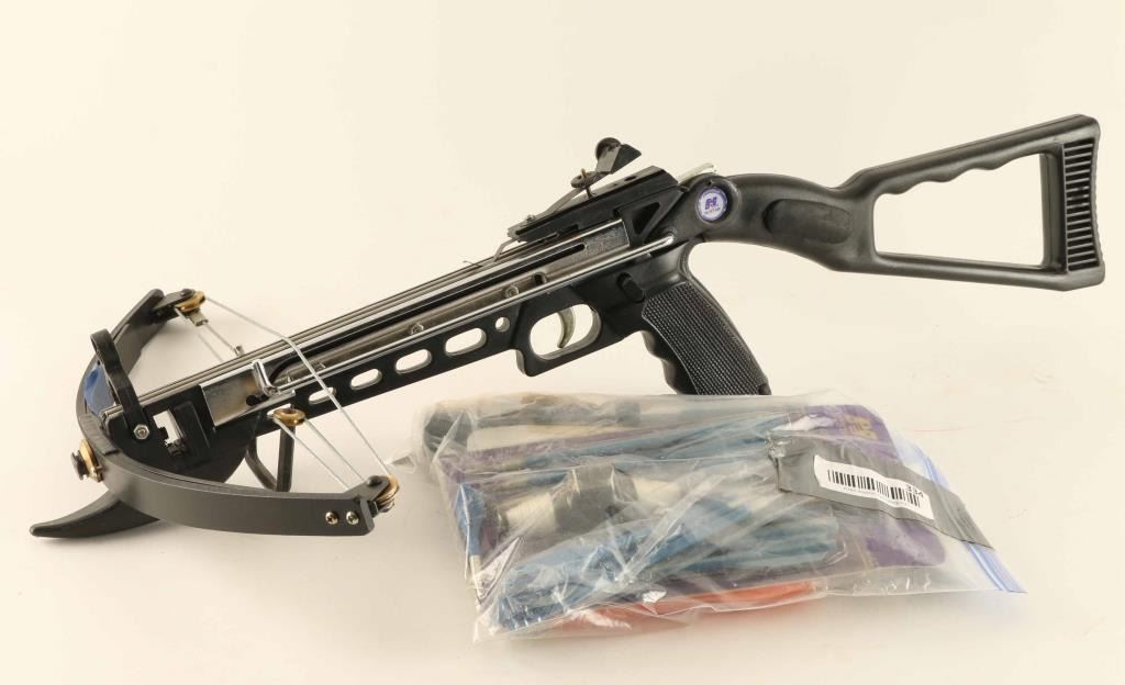 Five-pound youth crossbow has 100-pound draw weight and 200-foot effective range, and convenient built-in compass,4x20 scope with 20-millimeter multi-coated lens. Also comes with ten 6.25" arrows, ten 3" darts, ten 7" retrieval arrows, and two retrieval reels