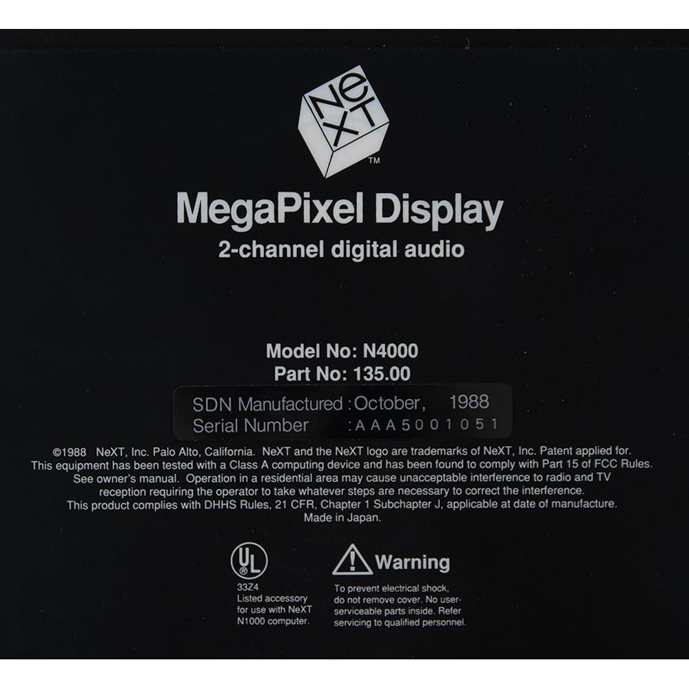 - MegaPixel Display 17Àù monitor (Model No. N4000, Part No. 135.00, SDN Manufacture: October 1988, Serial No. AAA5001051), with an adapter cable and gray cover