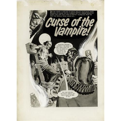 <B>Neal Adams - Creepy #14, Splash Page 1 Original Art (Warren, 1967).</B></I> Neal Adams electrified Silver Age readers when he burst upon the comics scene in the mid-sixties, and his greytone art for the Warren magazines was some of his best work. This fantastic splash hails from Archie Goodwin's chiller, "Curse of the Vampire." The piece has an image area of 11" x 15", and the art is in Very Good condition.
