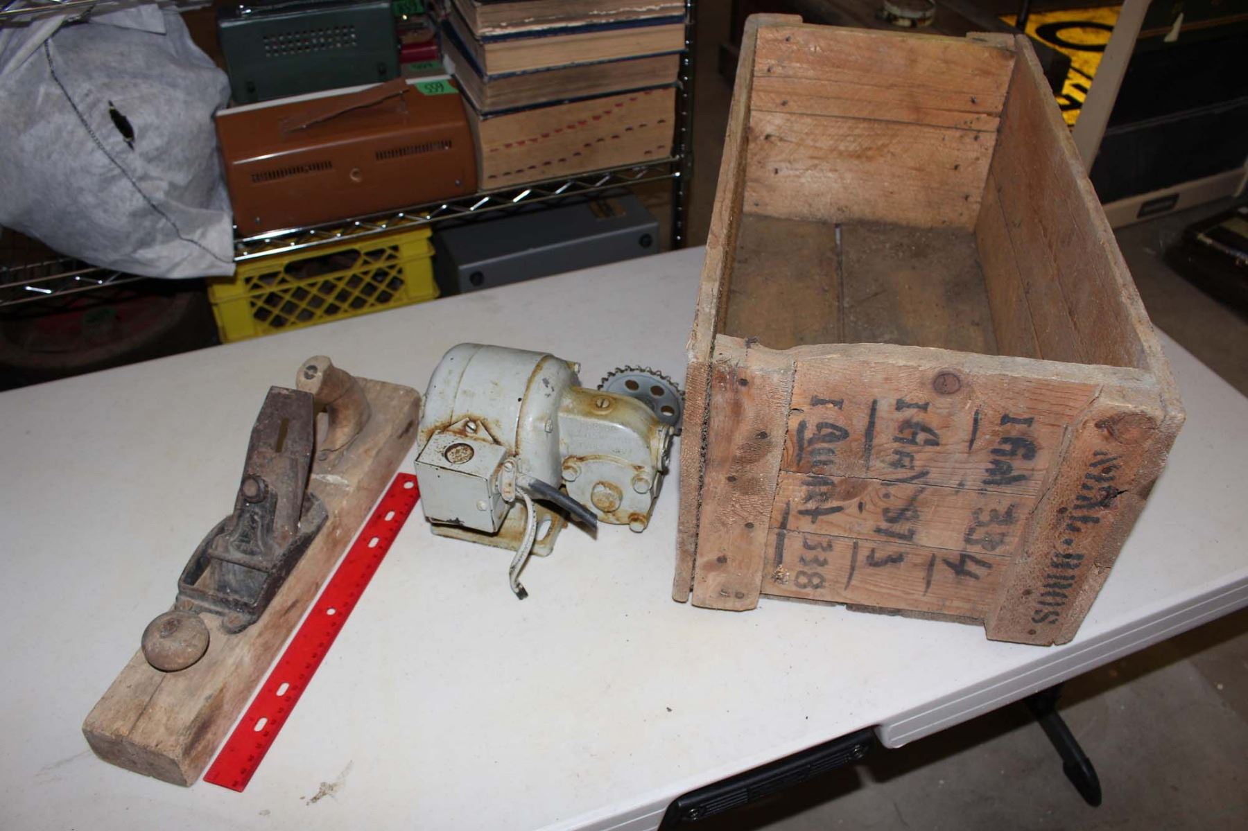 Neal Bros Wooden Crate(24"x12"x9"), Wooden Planer& A Boston Ratiometer