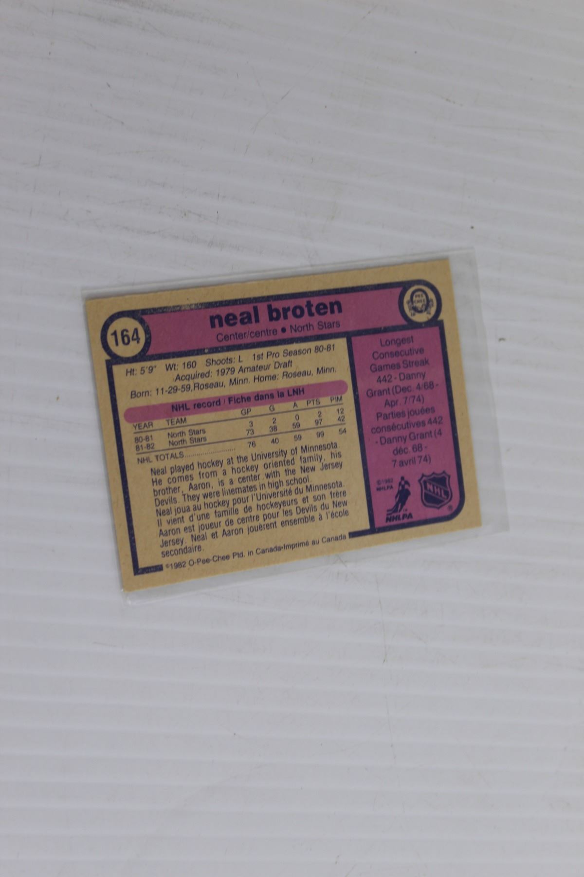 Neal Broten 1982-83 OPC Rookie Hockey Card