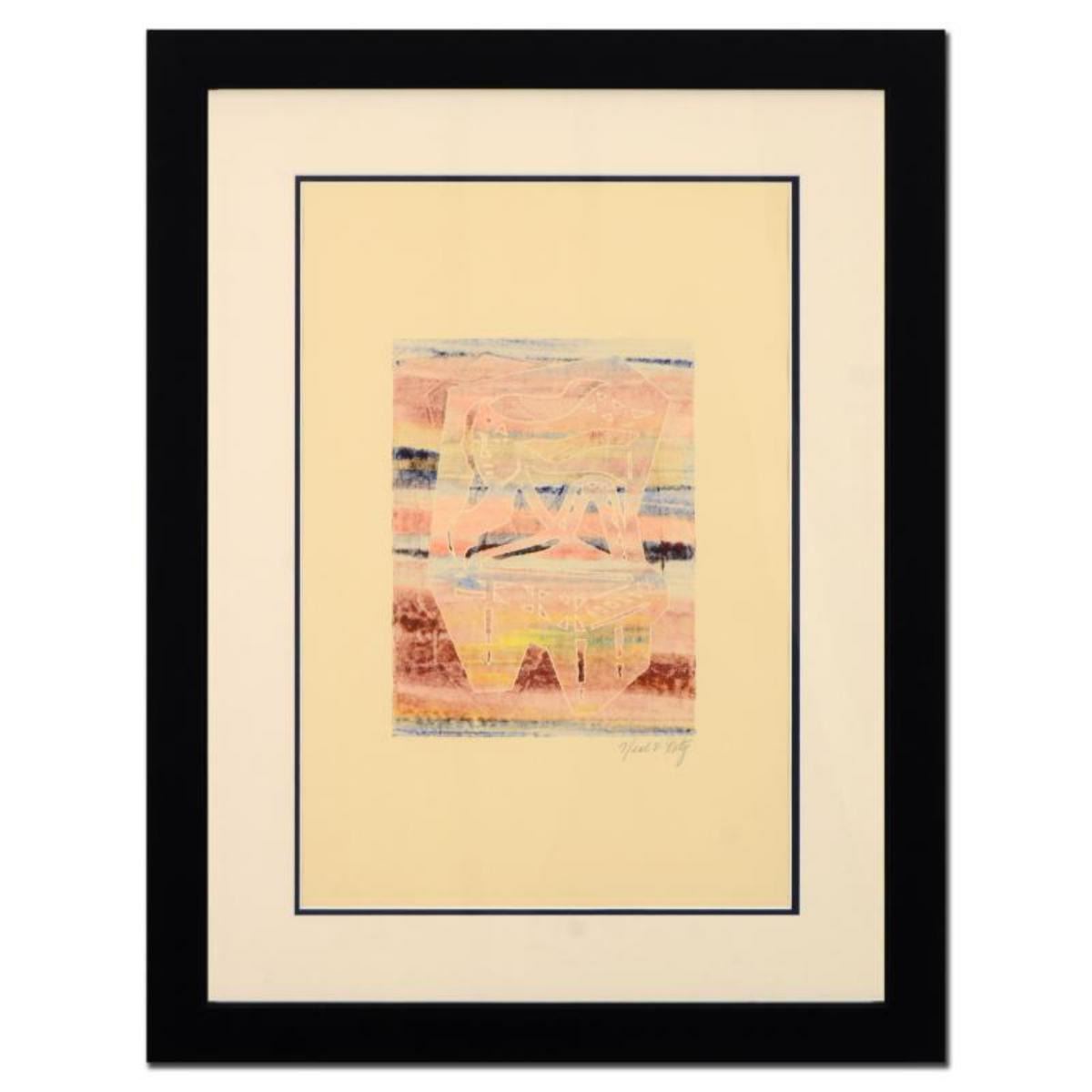 This is an original mixed media linocut on paper by Neal Doty (1941-2016), hand signed by the artist. This piece comes custom framed. Includes Certificate of Authenticity. This piece comes from Neal Doty's personal collection and was received directly from Doty's Estate. Measures approx. 23.5" x 30.5" (frame), 9" x 12" (image). Reference #: 231912