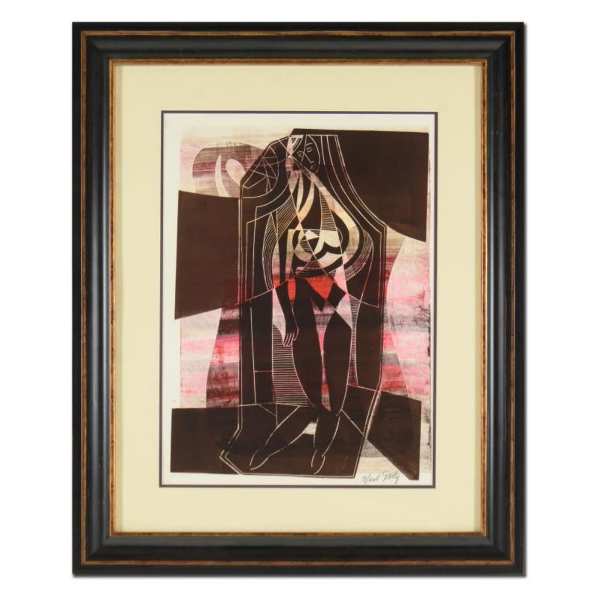 This is an original mixed media linocut on paper by Neal Doty (1941-2016), hand signed by the artist. This piece comes custom framed. Includes Certificate of Authenticity. This piece comes from Neal Doty's personal collection and was received directly from Doty's Estate. Measures approx. 28.5" x 34.5" (frame), 15" x 22" (image). Reference #: 235856
