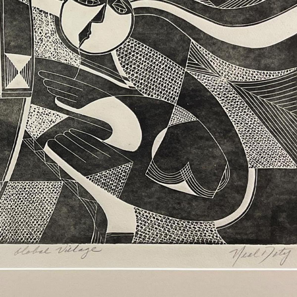 Neal Doty (1941-2016), "Global Village" Framed Limited Edition Linocut from an AP Edition, Hand Sign