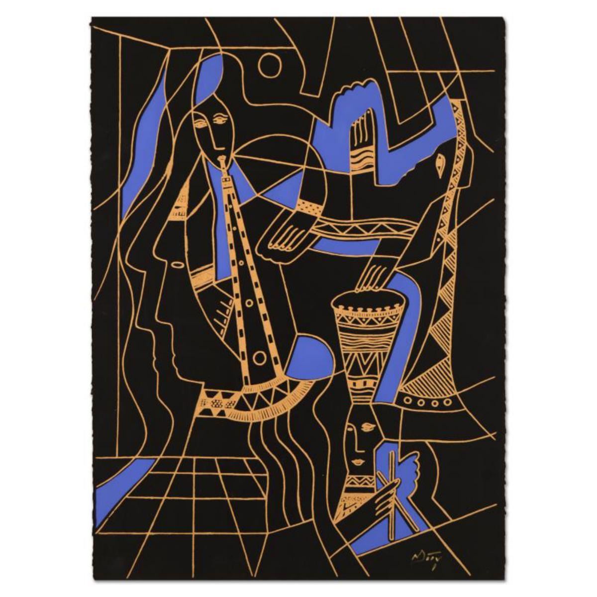 "Night Music" is a serigraph on paper by Neal Doty (1941-2016), hand signed by the artist. Includes Letter of Authenticity. This piece comes from Neal Doty's personal collection and was received directly from Doty's Estate. Measures approx. 22" x 30" (image). Due to the character of the paper and age of this piece, there may be very minor scuff marks on the paper. Reference #: 228849.