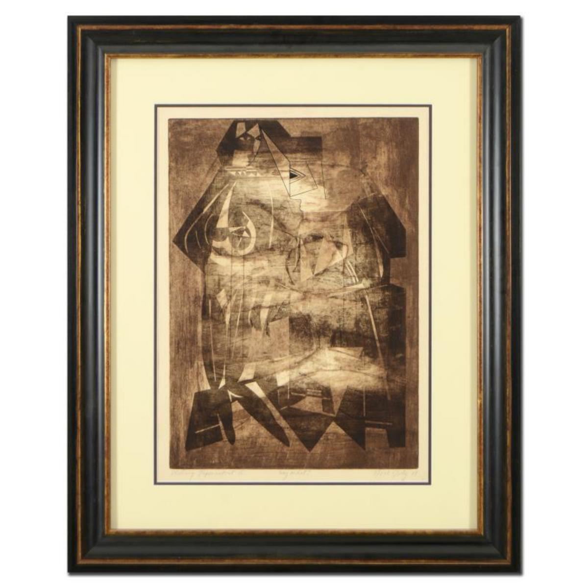 "Say What!" is a one-of-a-kind mixed media linocut on paper, AP numbered 1/1 by Neal Doty (1941-2016), dated (1979) and hand signed by the artist. This piece comes custom framed. Includes Certificate of Authenticity. This piece comes from Neal Doty's personal collection and was received directly from Doty's Estate. Measures approx. 28" x 34" (frame), 16" x 22" (image). Reference #: 239402