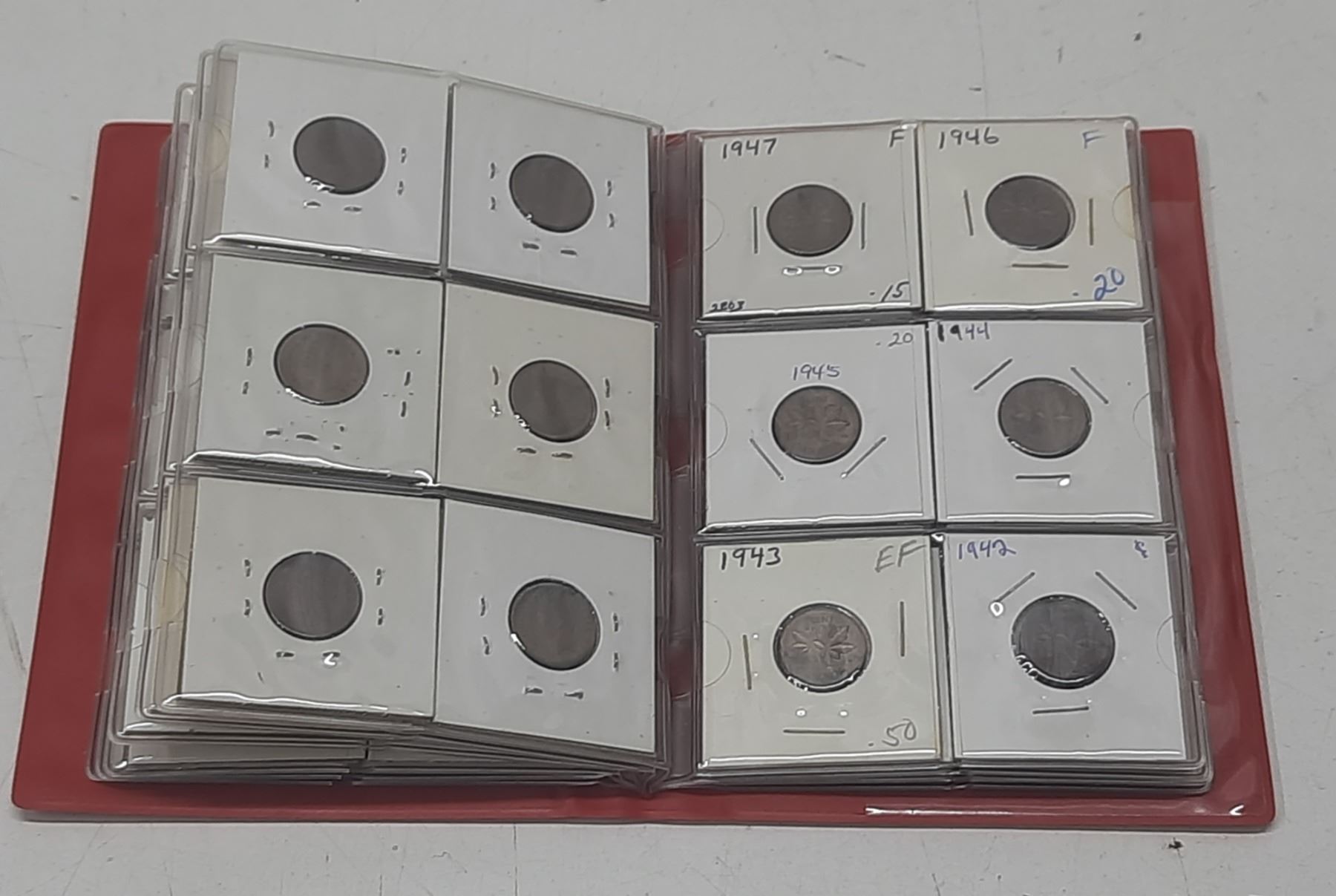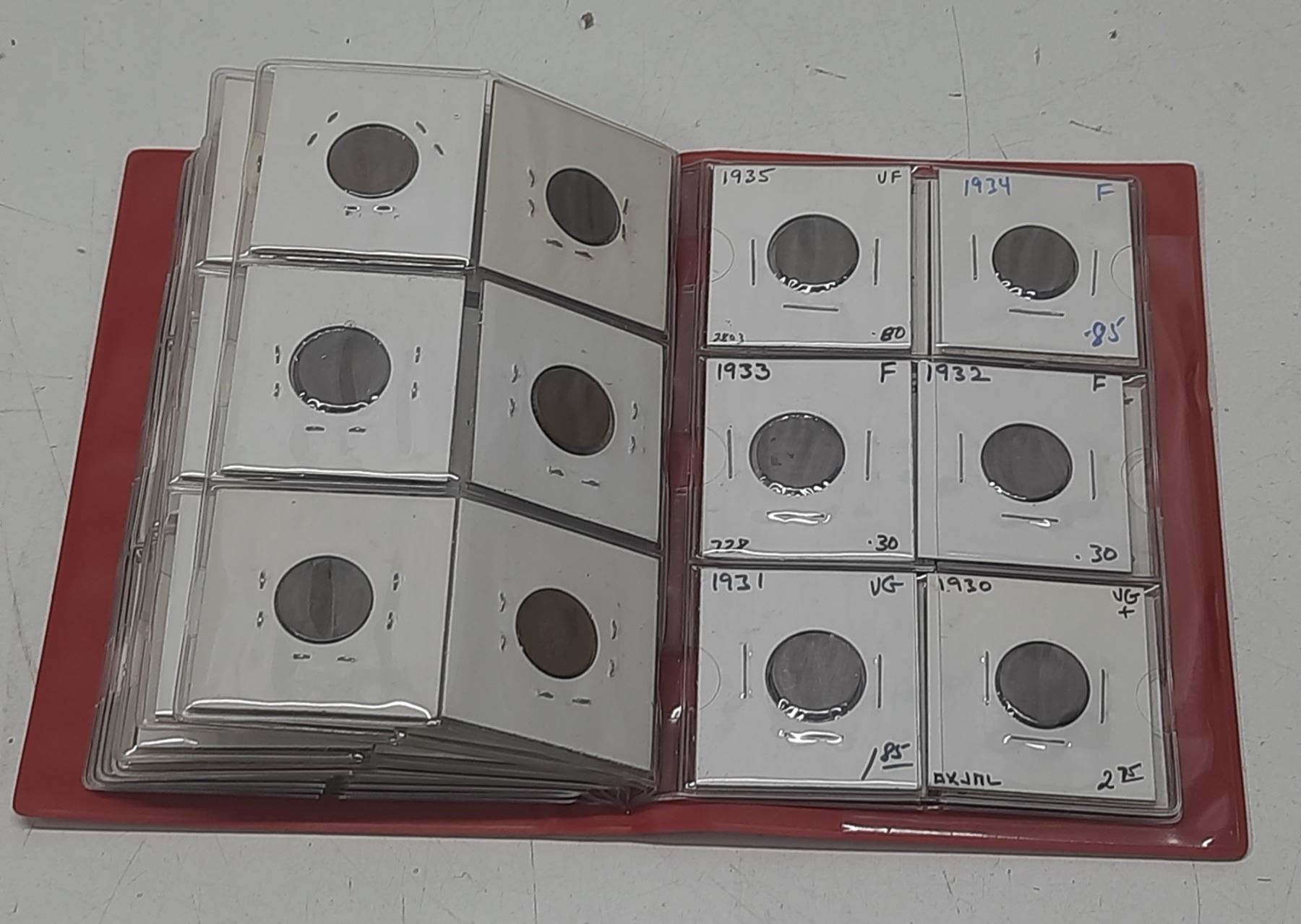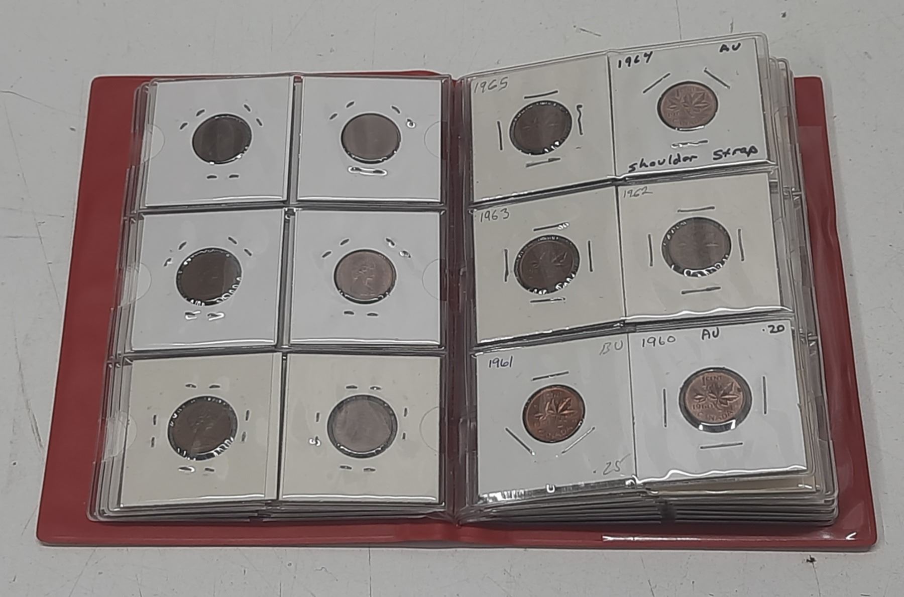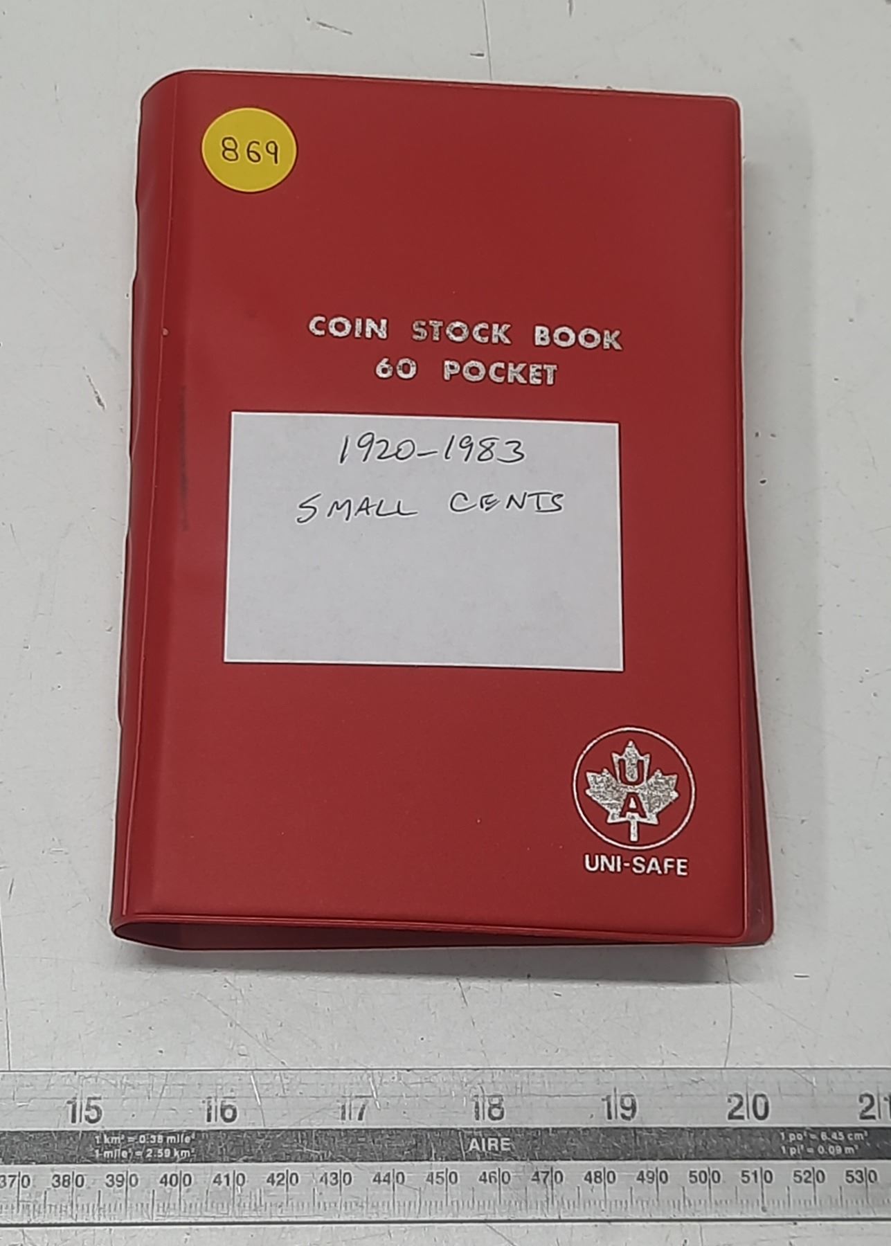 Near Complete Canadian Small Cent Collection 1920 – 1983. Missing only 5 Key Dates. Housed in a Uni-Safe Coin Stock Book. Used.