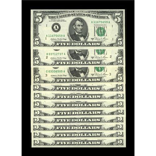 <B>Near Complete District Set Fr. 1977-A $5 1981A Federal Reserve Notes. Choice Uncirculated-Gem Crisp Uncirculated.</B></I><BR>The Dallas District note is missing.<BR><BR><b>Shipping:</b> Coin/Currency (<a target="_blank" href="http://www.heritageauctions.com/common/shipping.php">view shipping information</a>)