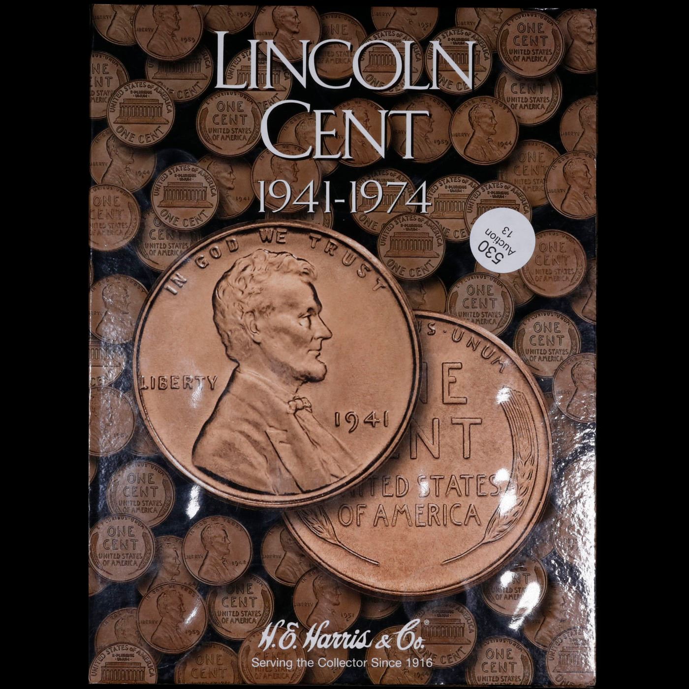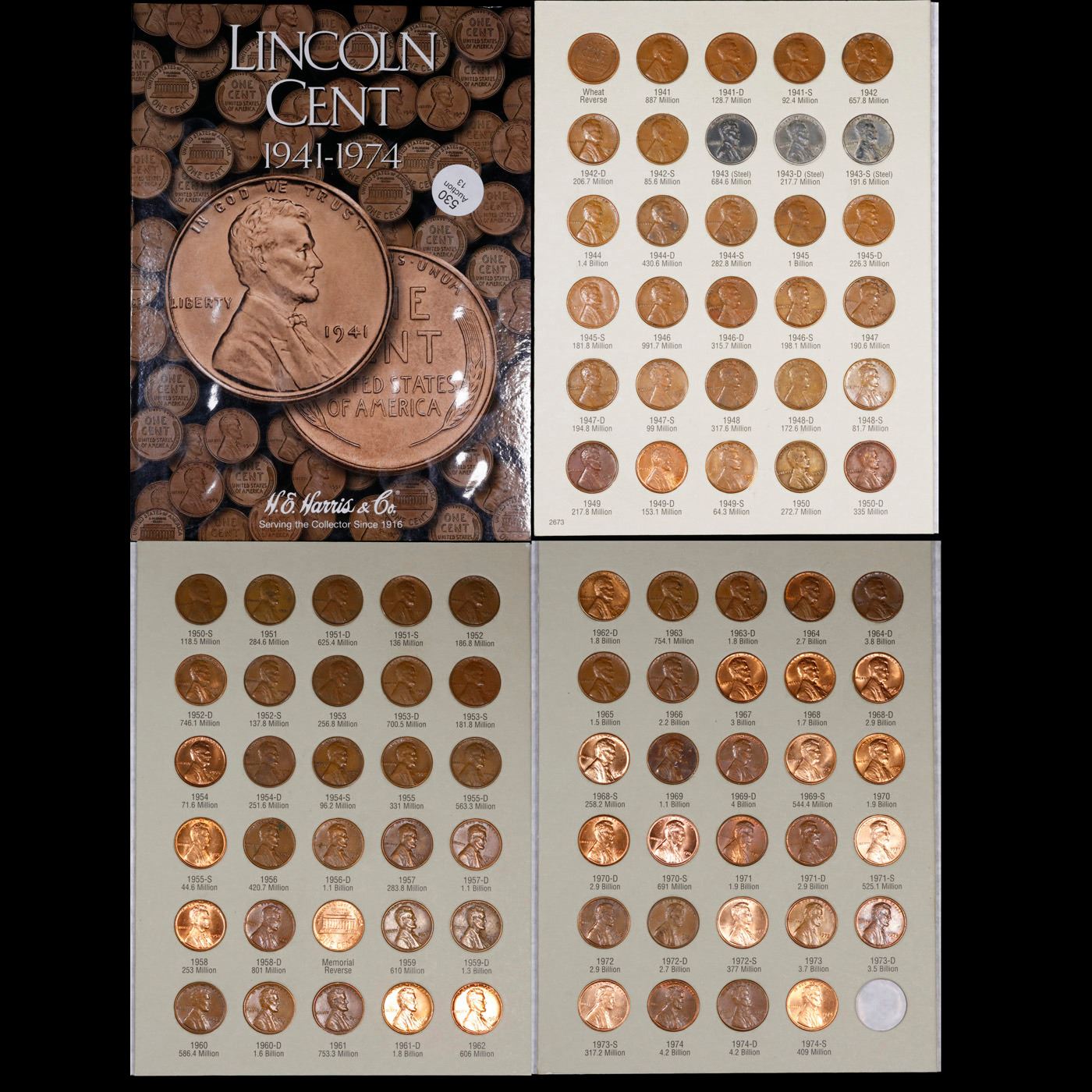 Near Complete Lincoln 1c H.E Harris & Co. Folder, 1941-1974 89 coins in Total. All coins encased in a H.E Harris & Co. Album. Date Range from 1941-1974. A Nice grouping of 89 coins.
