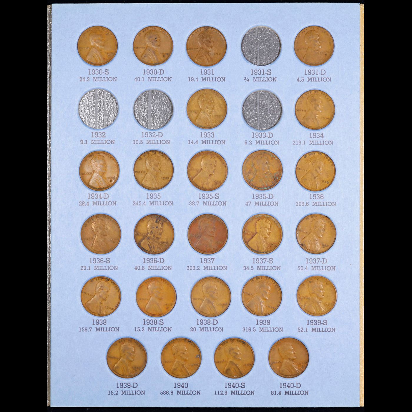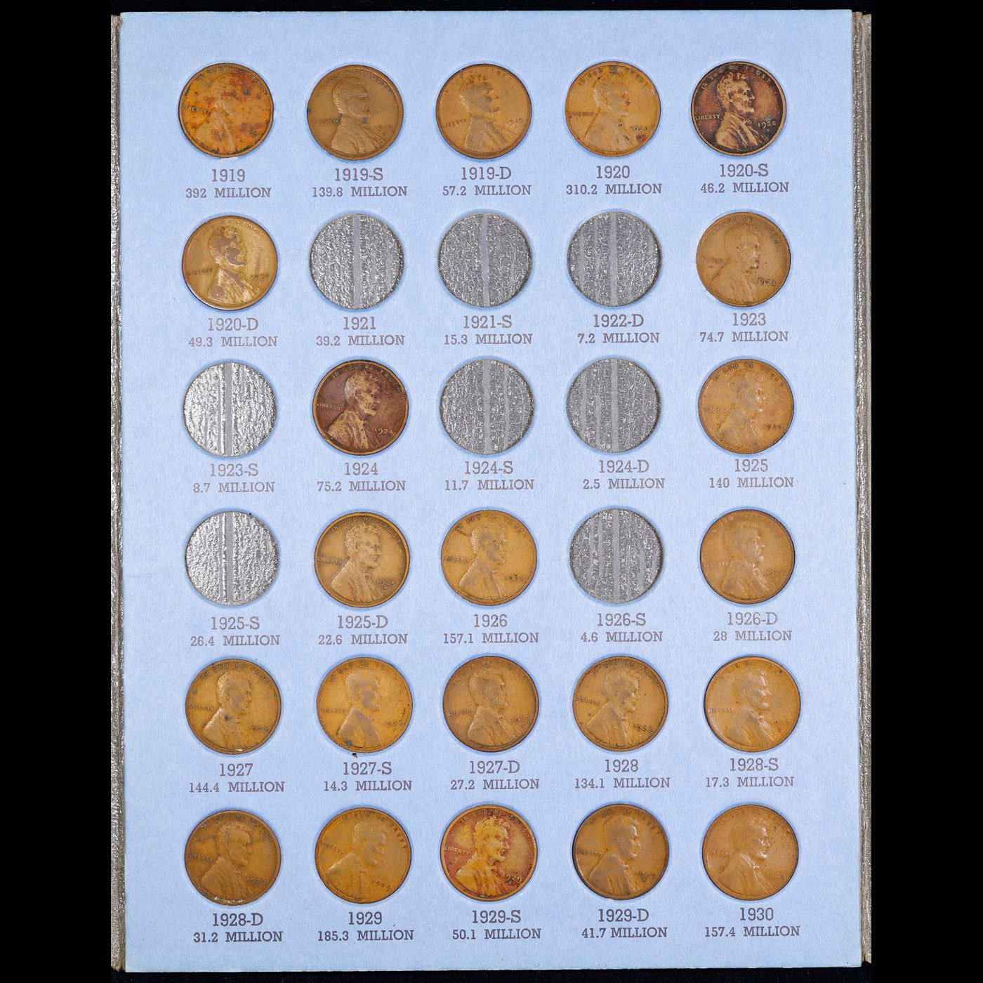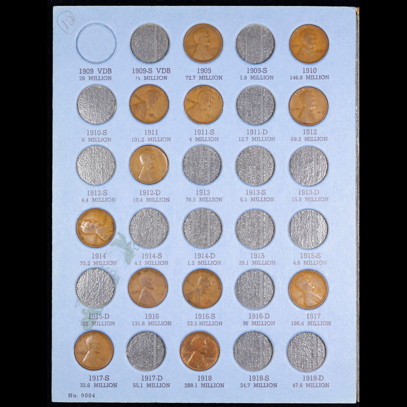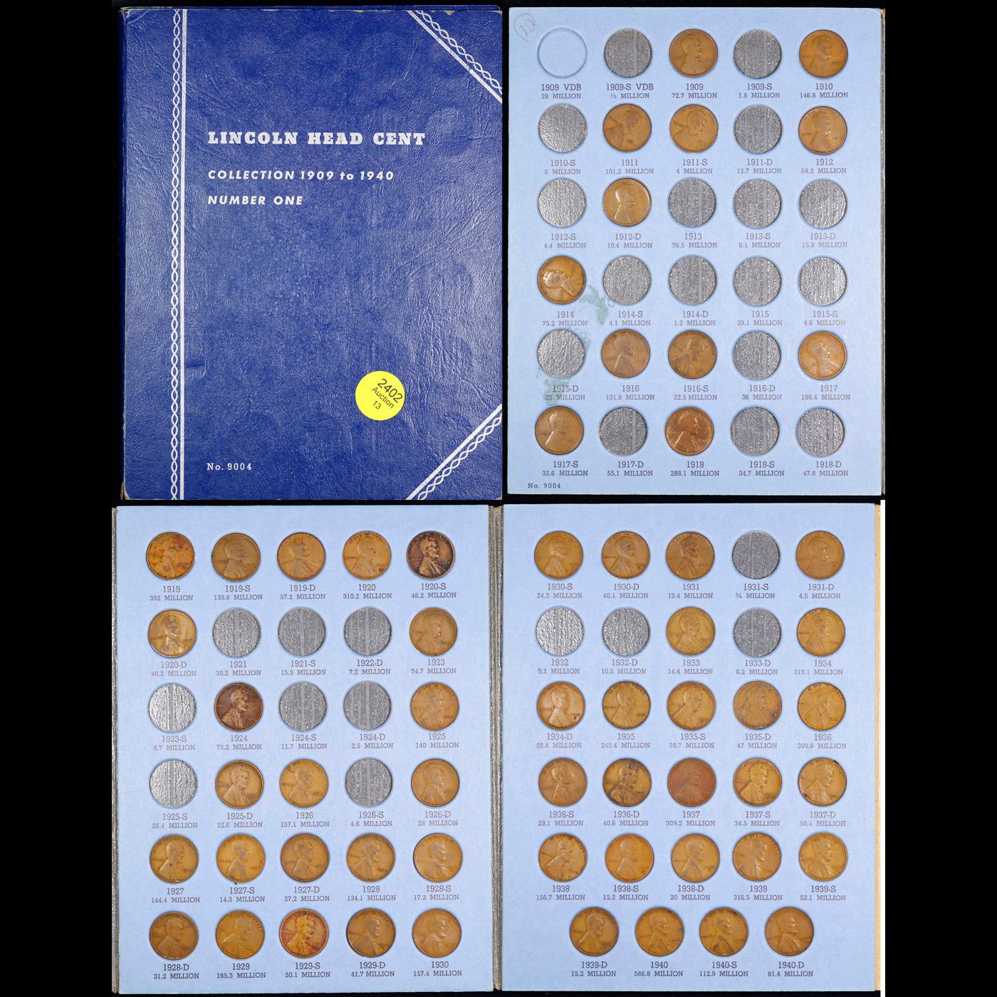 Near Complete Lincoln 1c Whitiman Album, 1909-1940, 59 coins in Total