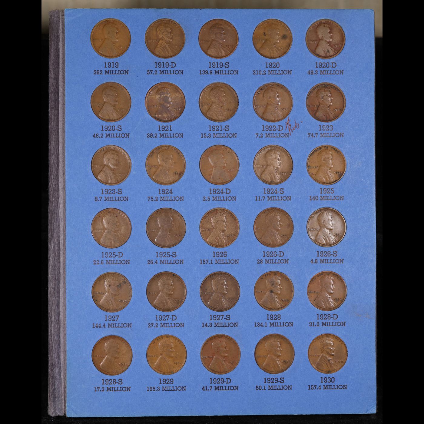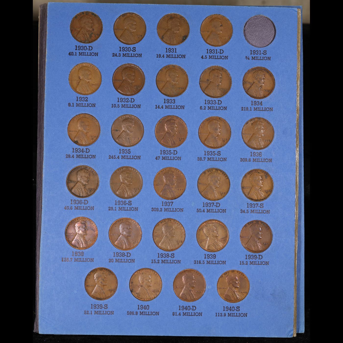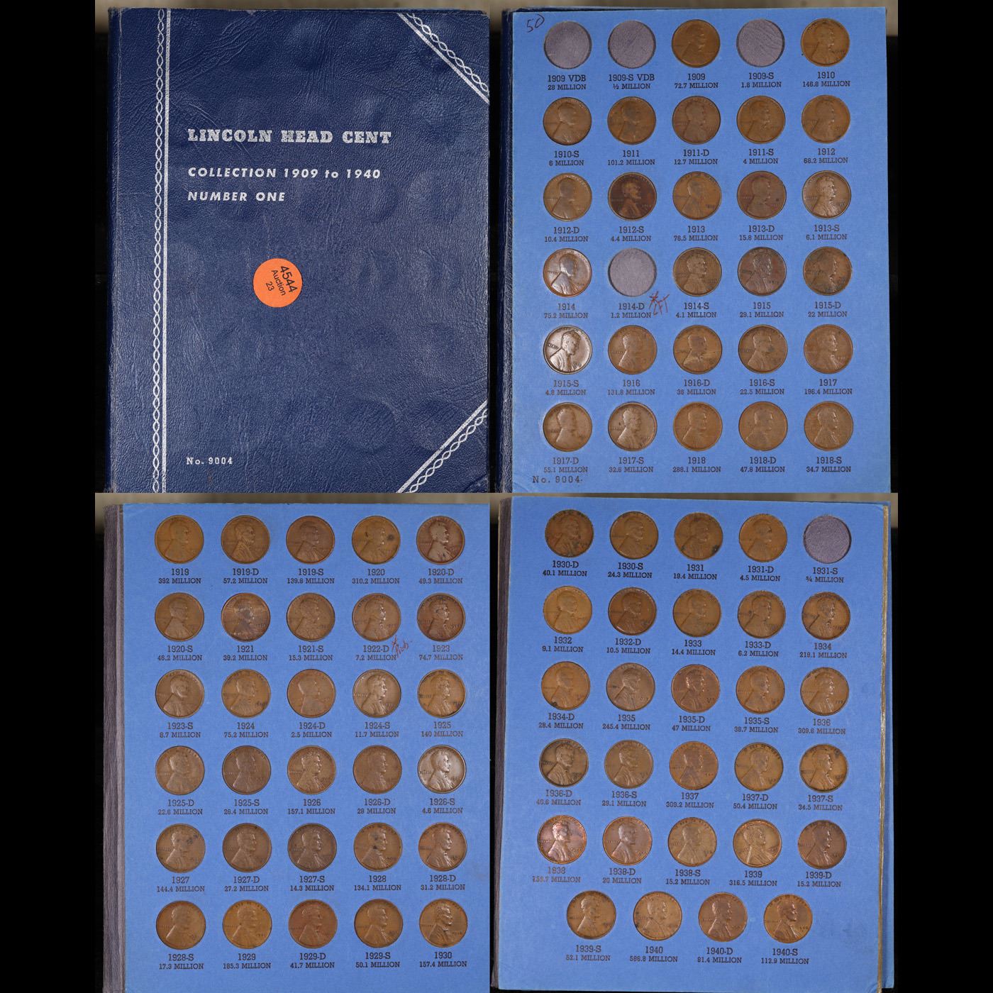 Near Complete Lincoln 1c Whitman Folder, 1909-1940 84 coins in Total. All coins encased in a Whitman Coin Album. Date Range from 1909-1940. A Nice grouping of 84 coins. 29 of the coins are from 1909-1919
