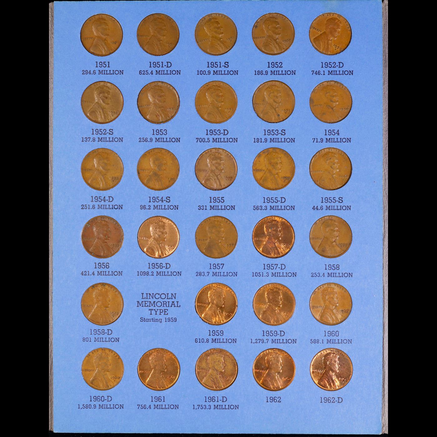Near Complete Lincoln 1c Whitman Folder, 1941-1974 78 coins in Total