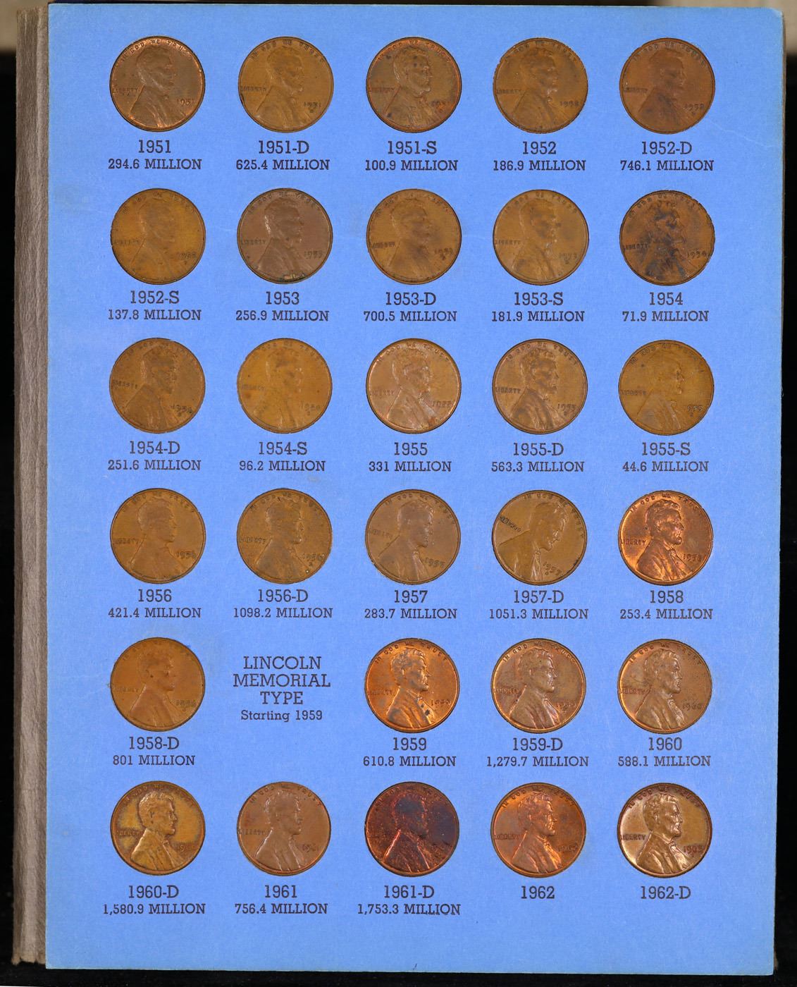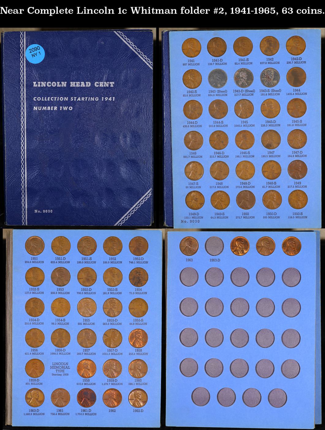 Near Complete Lincoln 1c Whitman folder #2, 1941-1965, 63 coins.