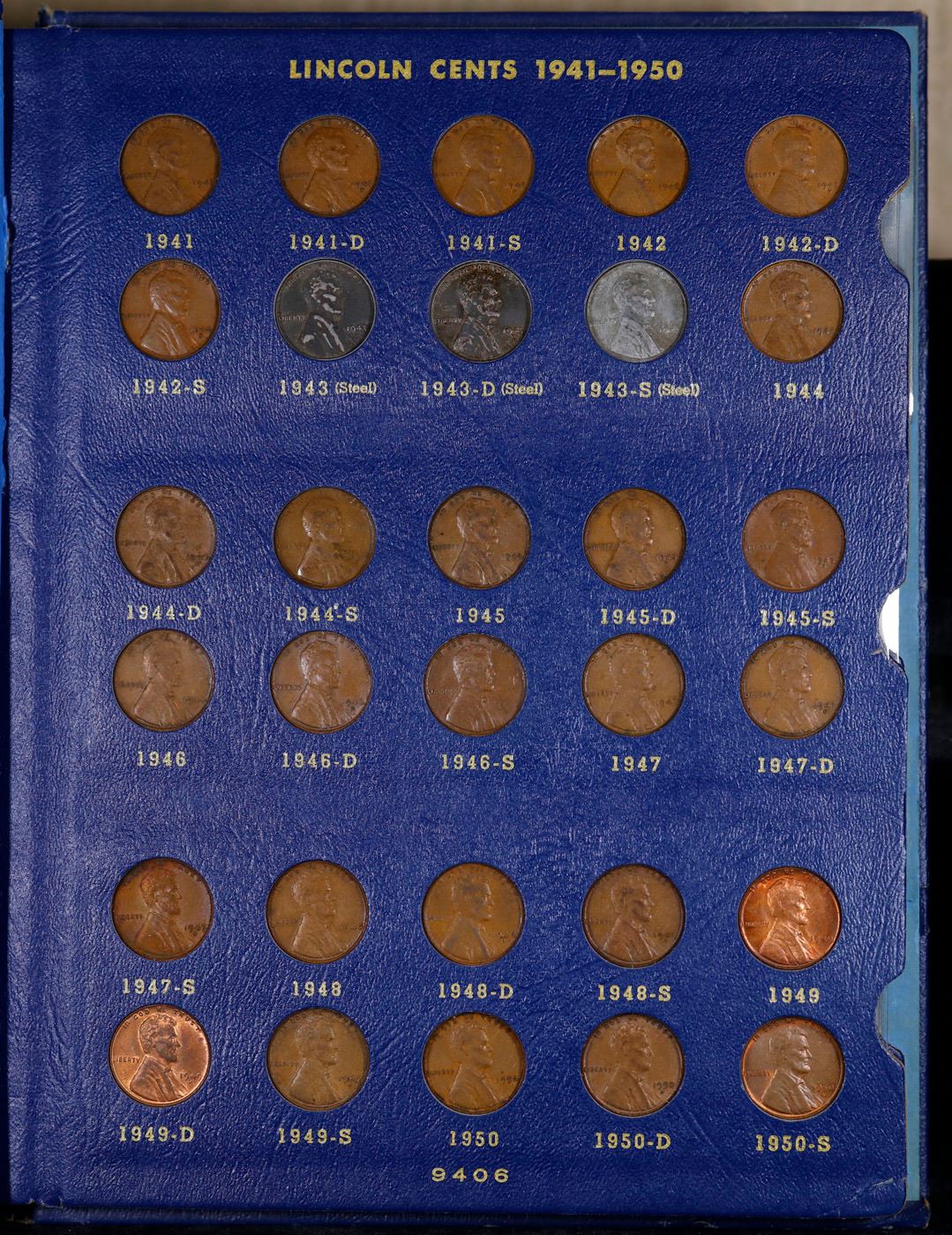 Near Complete Lincoln 1c Whitman folder #2, 1941-1966, 66 coins.