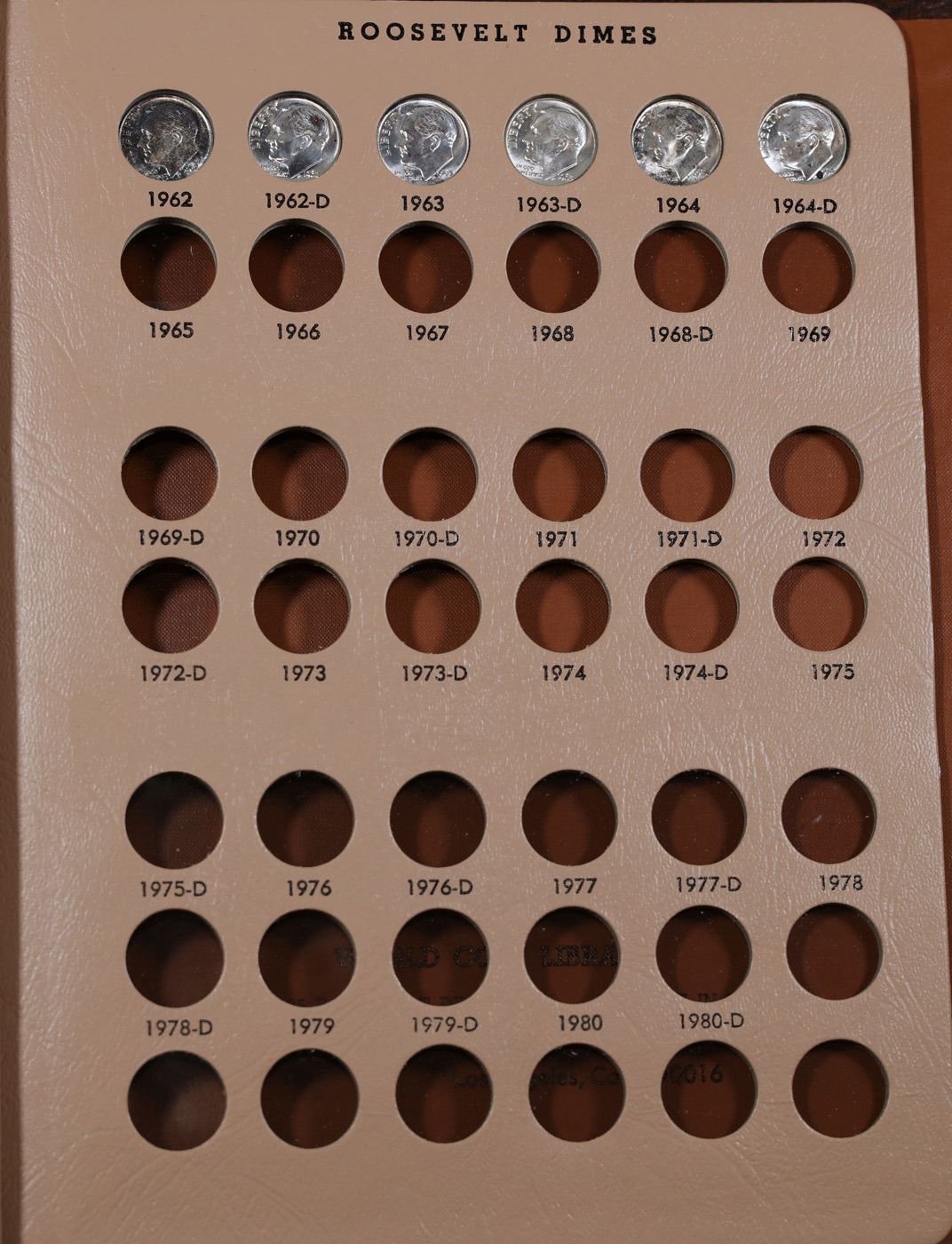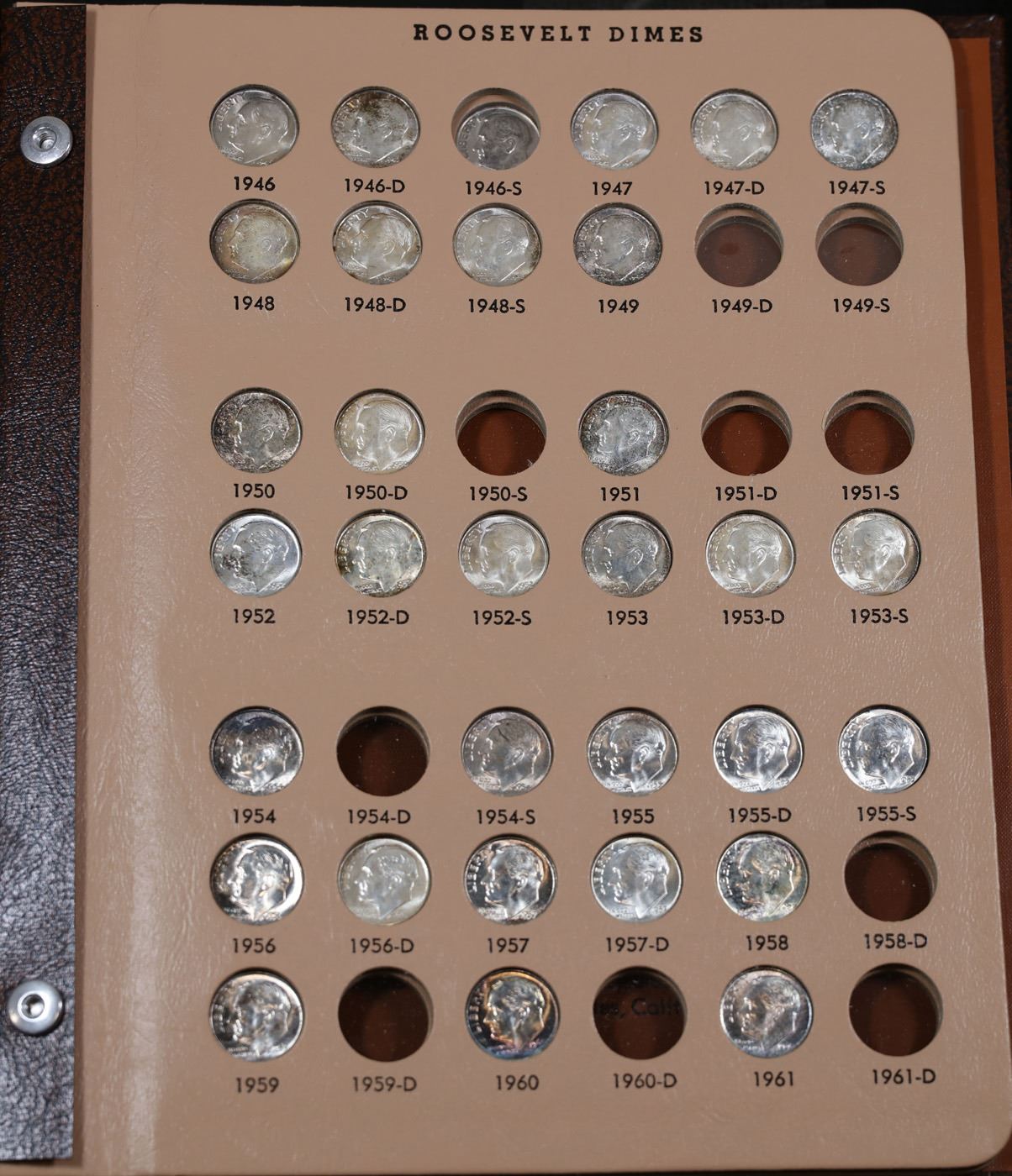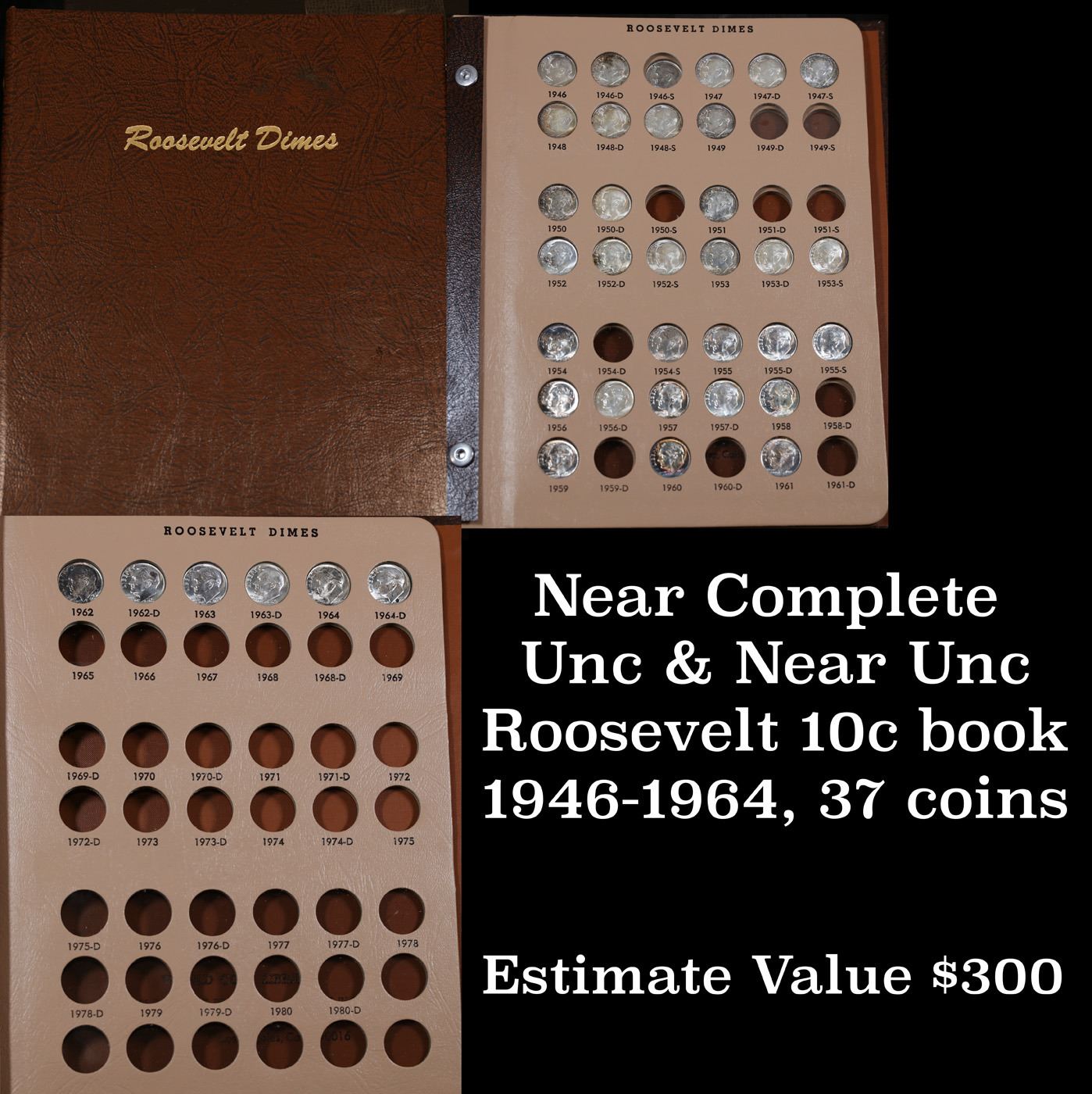 Near Complete Unc & Near Unc Roosevelt 10c book 1946-1964, 37 coins
