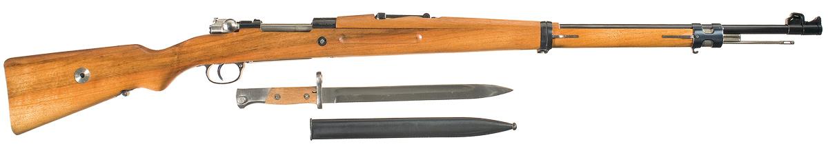 Condition: Excellent. The rifle retains 99% plus original blue finish with light handling marks. The stock is also excellent with a small pressure dent on the left side and overall only light handling marks. The markings are sharp. The action is excellent. The bayonet and scabbard are both excellent. Very small import mark inside the trigger guard bow.