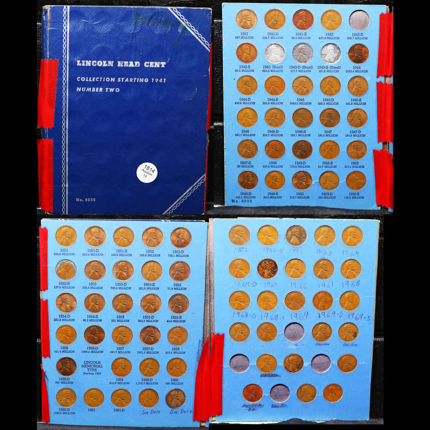 Near complete Lincoln 1c Whitman album, 1941-1974, 82 coins in Total. All coins encased in a Nice Whitman Book. Date Range from 1941-1974. A fantastic grouping of 82 coins.