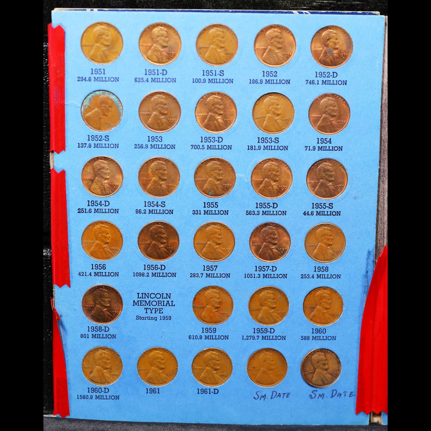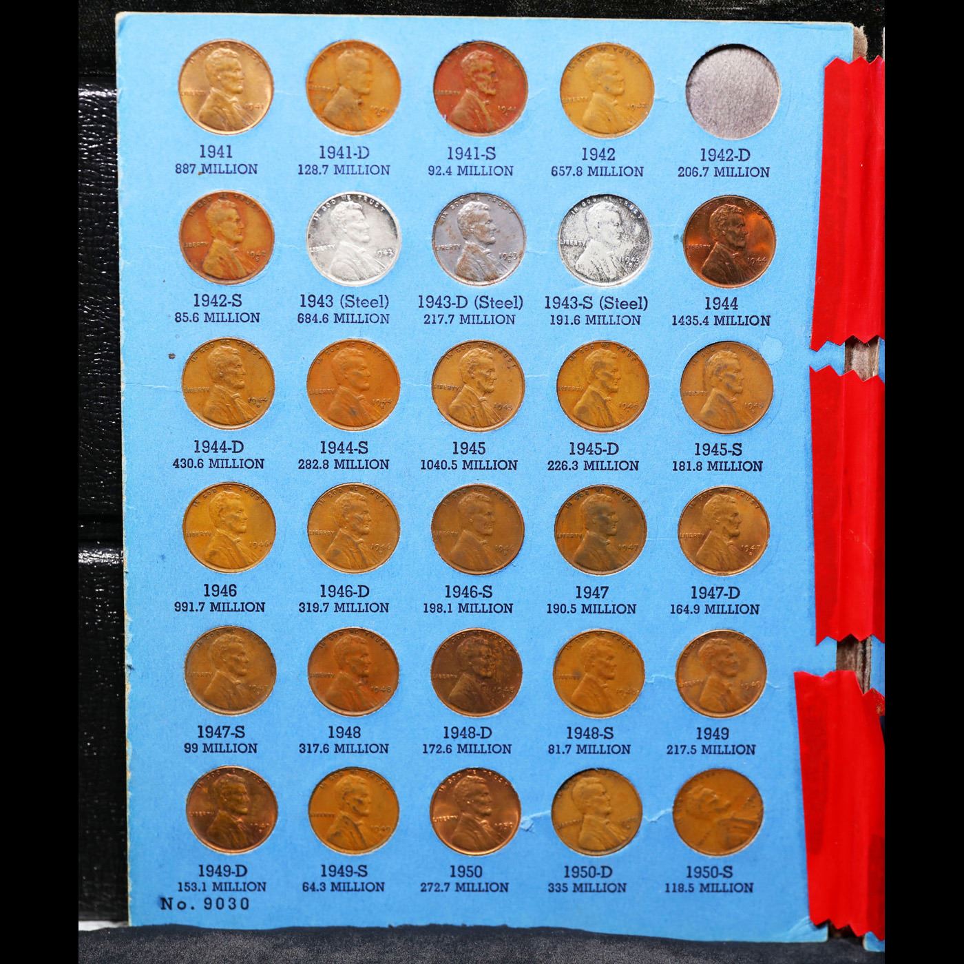 Near complete Lincoln 1c Whitman album, 1941-1974, 82 coins in Total