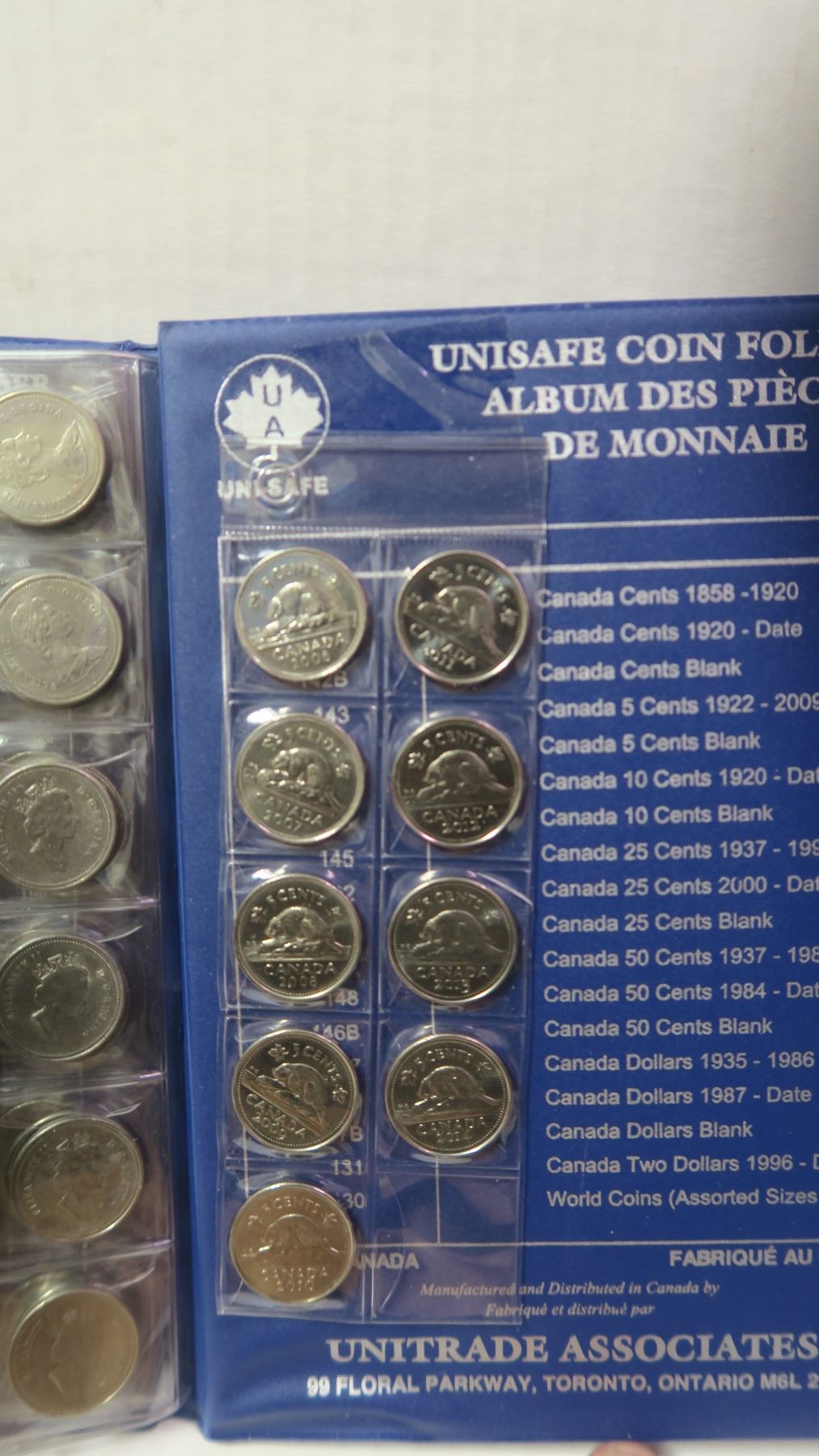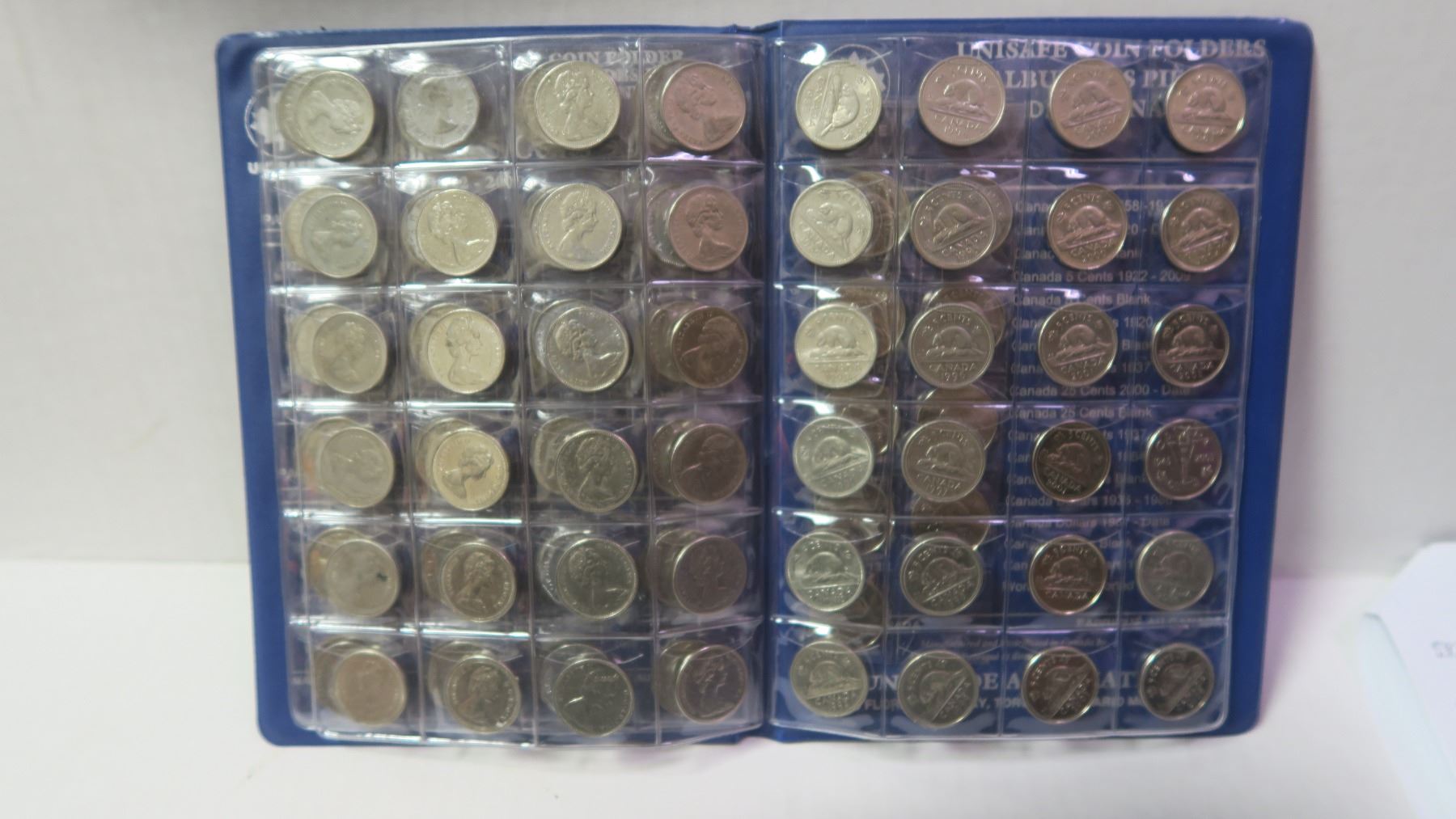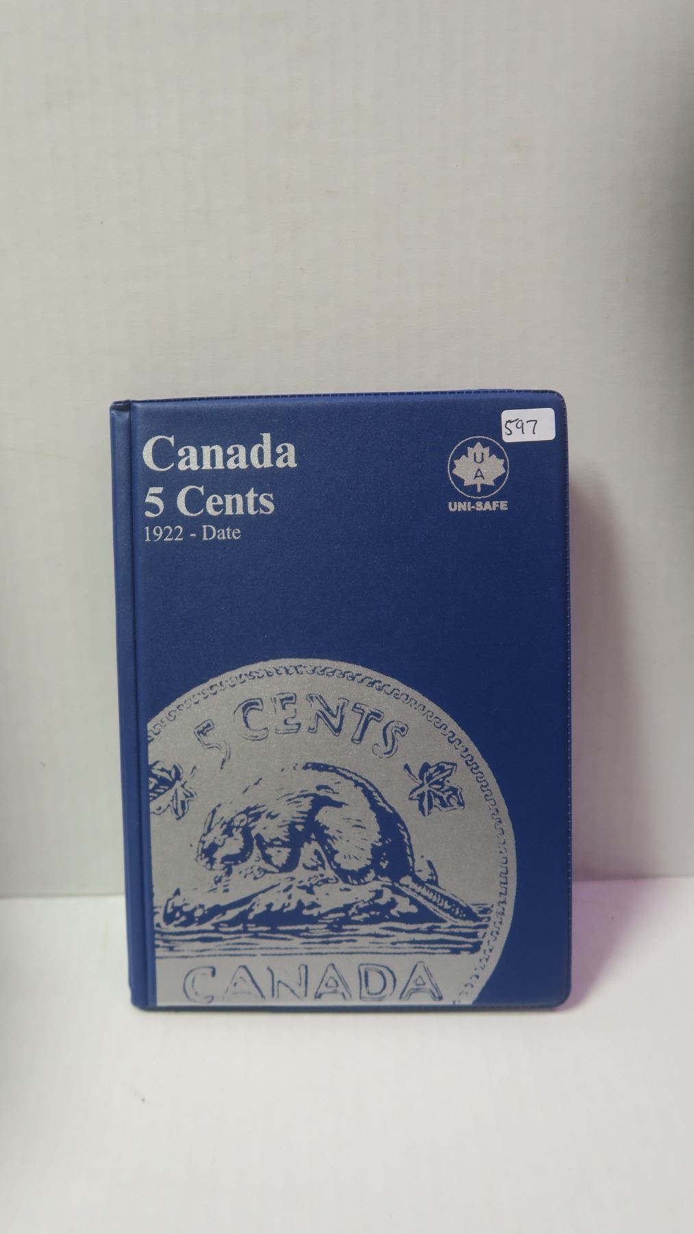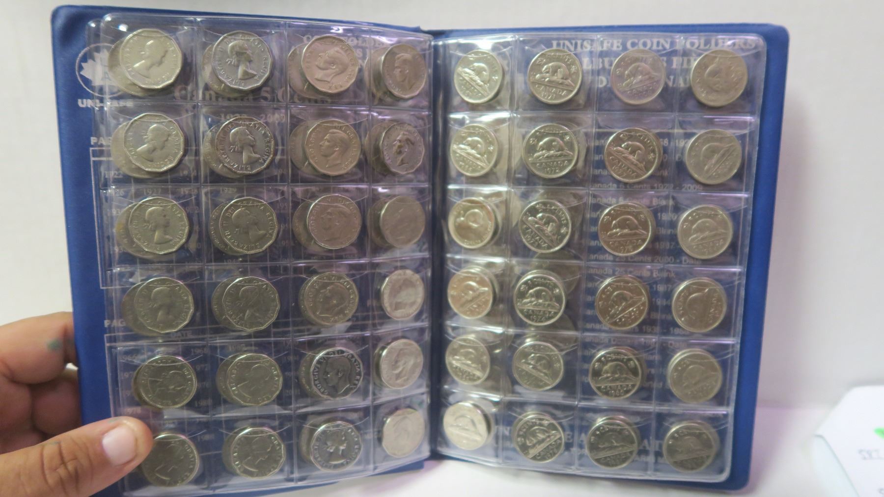 Near complete set of Canadian Nickel 5 Cents 1922 to 2014. Missing only Scarce 1925, 1926 Far 6 and 1947 Dot. Coins grade VG-8 to BU. Housed in a Uni-Safe album.