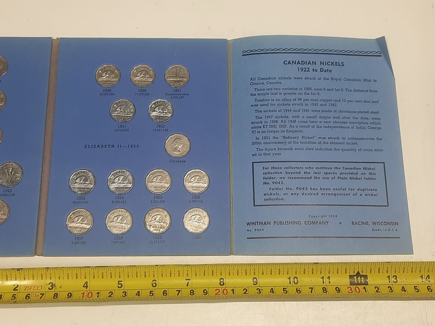 Near complete set of Canadian Nickels from 1922 – 1960. Missing only 1925 and both 1926 varieties. Housed in a blue Whitman folder.