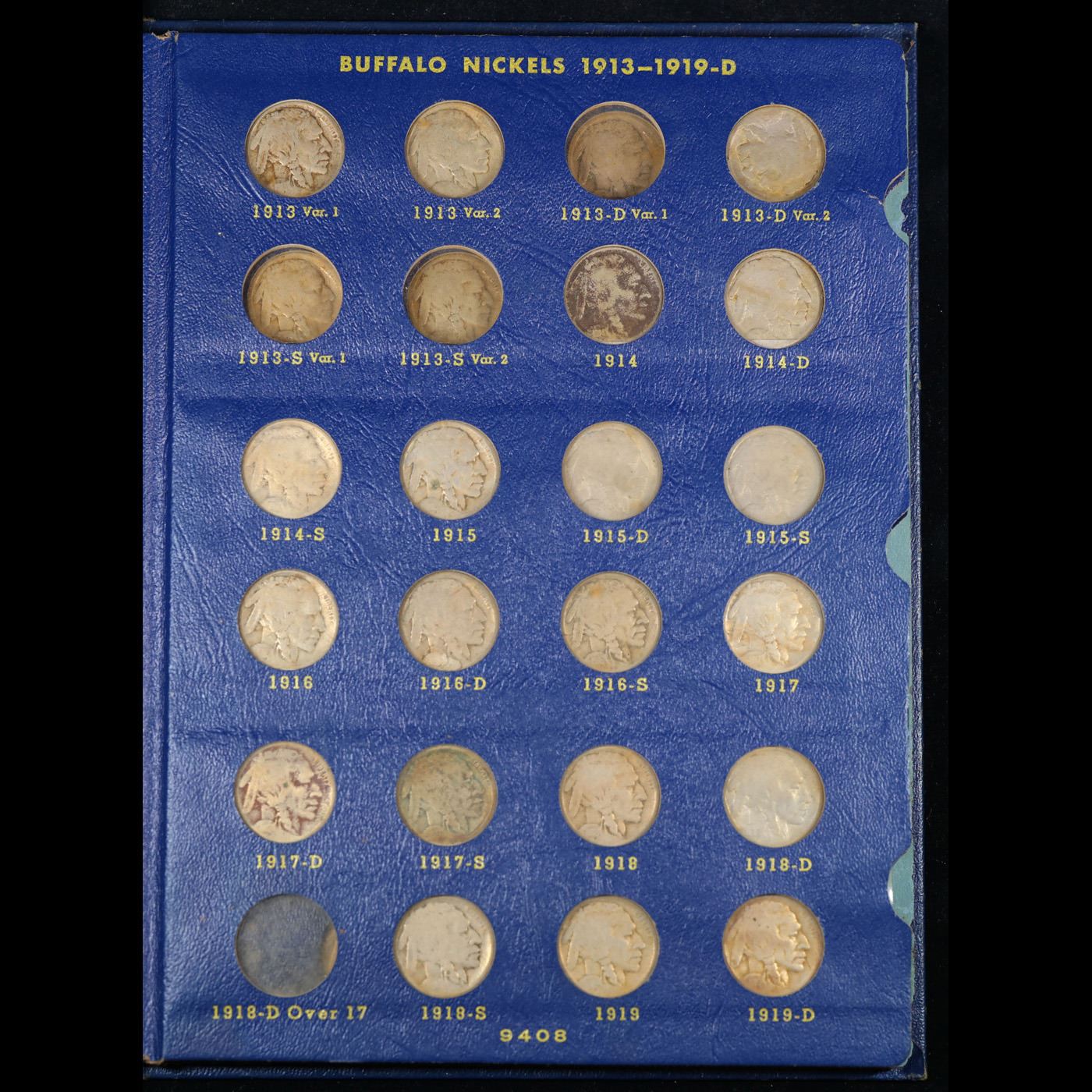 Nearly Complete Buffalo Nickels Book 1913-1938 64 coins. All coins encased in a splendid Whitman Folder. Dates range from 1913-1938. A fantastic set of 64 coins.