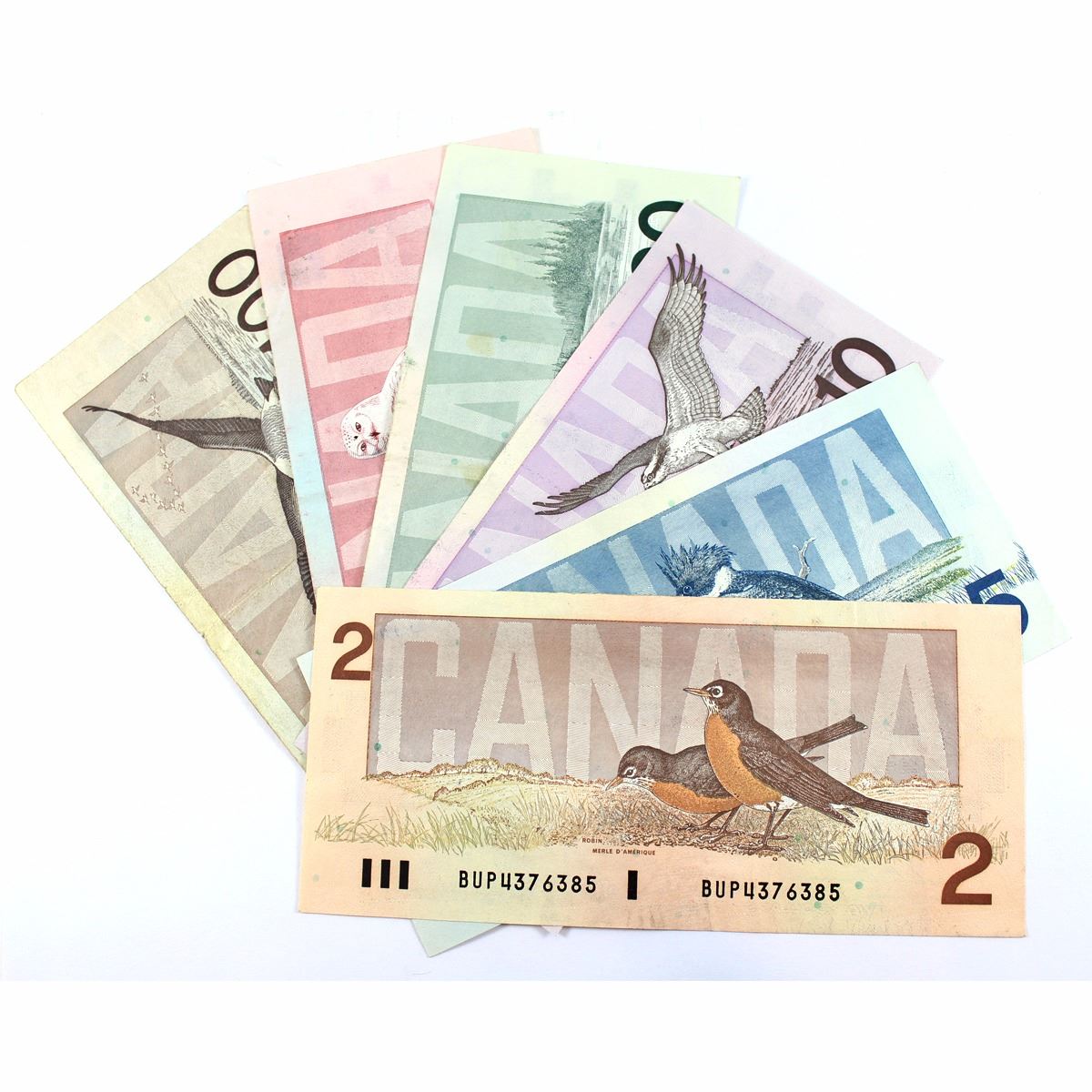 Nearly Complete Denominational Type Set of the Bird Series Banknotes. Included are six Bird Series Banknotes, one of each denomination in the Series except for the $1000