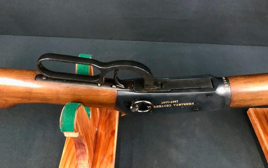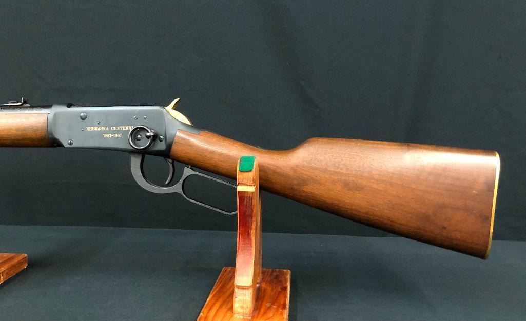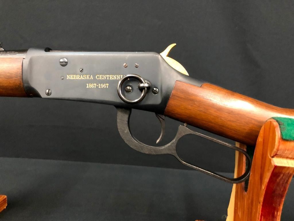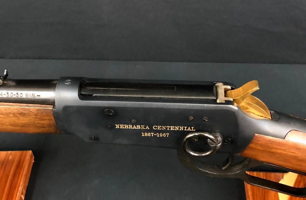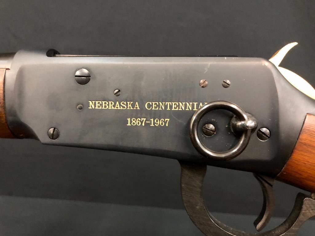 Presented for sale in this lot is a Winchester Model 94 carbine, made for the Nebraska Centennial. This carbine shows the standard markings of the 2,500 Nebraska Centennial commemorative carbines manufactured in 1966. It is a lever action in a .30-30 caliber. MAKER: Winchester. Serial No. NC0103. APPROX AGE: Circa 1966. SIZE: Barrel measures 20 inches. CONDITION: Good. Minimal wear expected. Please look closely at the pictures as they are an important part of our description and are hereby incorporated into the description, specifically with regards to condition. SHIPPING: There will be a $25 handling / packaging fee for shipping this lot. The actual cost of postage will be added on top of that. BUY IT NOW: If you would like to buy this item now, without waiting for the auction day to bid on it, we do offer this option (which is available up to 48 hours before the actual auction starts). The “Buy it Now†price is the high estimate of this lot (plus applicable fees and the Buyer's premium is discounted to 10% when using the Buy it Now option). If you would like to exercise this option, you must contact us by email (or phone as long as you talk to someone live). Reference this lot number and your intention to "Buy it Now." *****This firearm requires an FFL Transfer*****