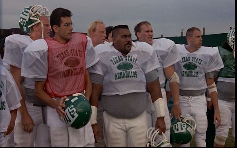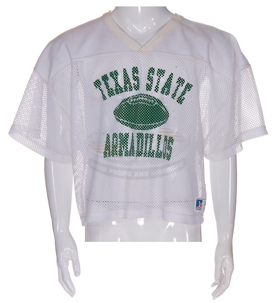 (Paramount Pictures, 1991) This jersey was acquired by the production for use by various actors during filming. The size X-large jersey features the Texas State Armadillos logo on the front and is slightly distressed from filming. "JB" is written in blue ink on the inside.