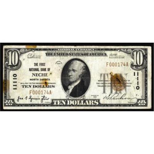 Neche, ND. $10 1929 Ty. 1. The FNB. Charter #11110. Very Good.