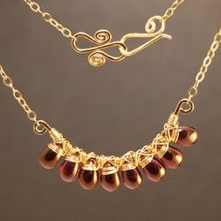 Metal: Silver Garnet-wrapped shape on chain, about 18". Available in either 14K gold-filled, rose gold-filled, or sterling silver. All jewelry is entirely handmade in our studio in New York.