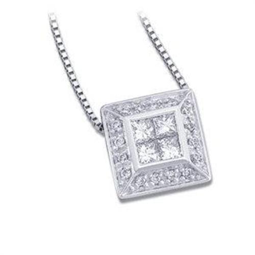 This beautiful 14k White Gold Necklace features 4 PRINCESS CUT DIAMONDS surrounded by 16 ROUND DIAMONDS. The Diamonds are all well matched, FINE 'H' Color and 'I1' Quality. The Diamond Total Weight = .50 CARATS!