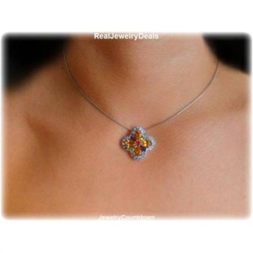 Necklace Solid Sterling Silver Genuine Gemstones: Amethyst, Garnet, Citrine, Peridot, Blue Topaz
