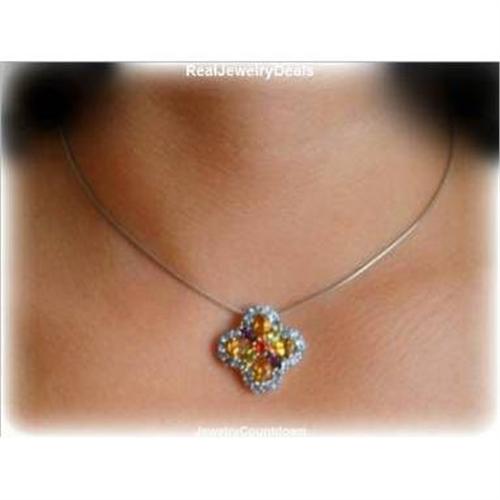Necklace Solid Sterling Silver Genuine Gemstones: Amethyst, Garnet, Citrine, Peridot, Blue Topaz