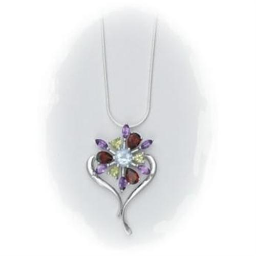 Necklace Solid Sterling Silver Genuine Blue Topaz, Garnet, Amethyst Peridot