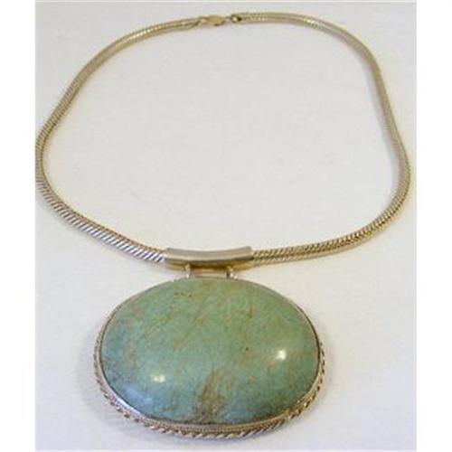 Necklace. Sterling (Signed 925 and "BS"in a diamond) and Turquoise. The round woven chain is 17" long and the drop is 2.1/2" X 2" X 3/4" deep. c1990.