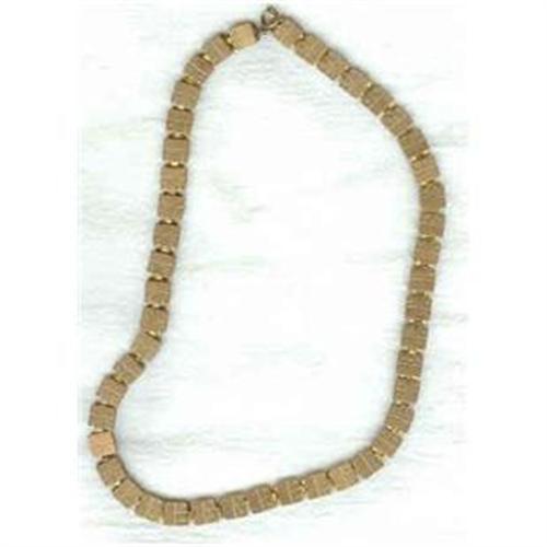 Marked on the circular clasp ring,"1/10th 12kGF" 18" long. Each link measures 5/16" X 5/16" X 1/8". There is a different design on each side of the links. A herringbone stripe on one side and three small flowers on stalks on the other.